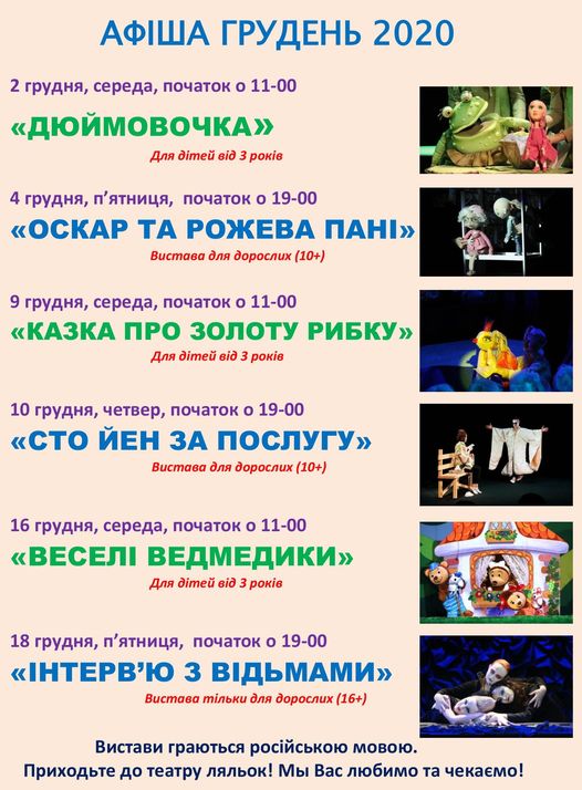 В  Одесском театре юного зрителя им. Юрия Олеши пока разместили расписание лишь  на первую неделю декабря.