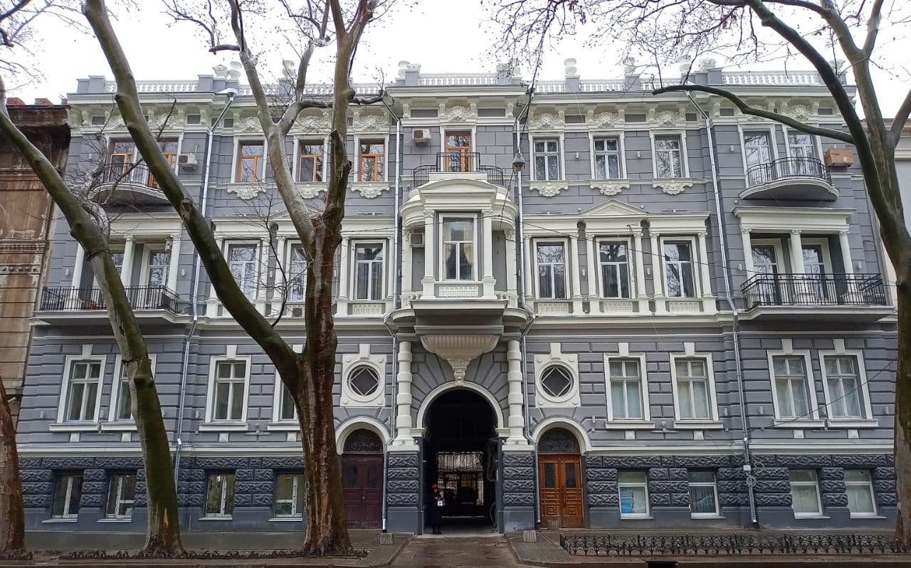 Дом был построен в 1880 году, архитектором Нисом. Здесь жил знаменитый педагог и музыкант Петр Столярский. Реставрация здания началась в 2019 году. В ходе нее были выполнены работы по реставрации фасада и замене кровли, внутренние работы не проводились. На сегодняшний день осталось закончить роботы в арочном проеме, в частности — решить вопрос с проводами коммуникаций внутри.  Об этом нашему корреспонденту рассказал главный инженер города Василий Иосифович Никитенко.