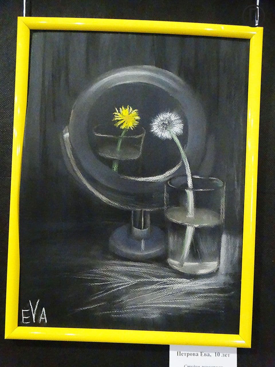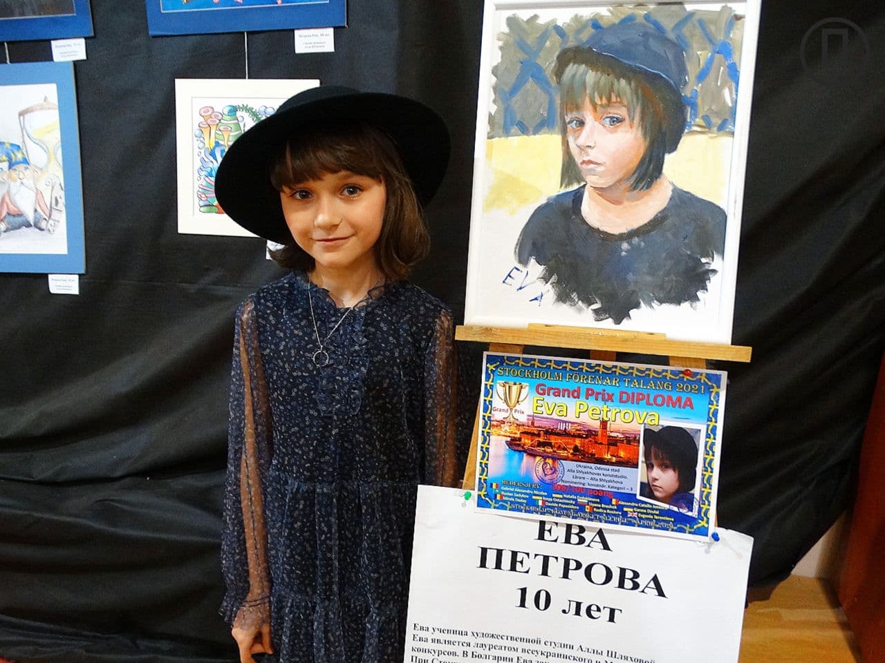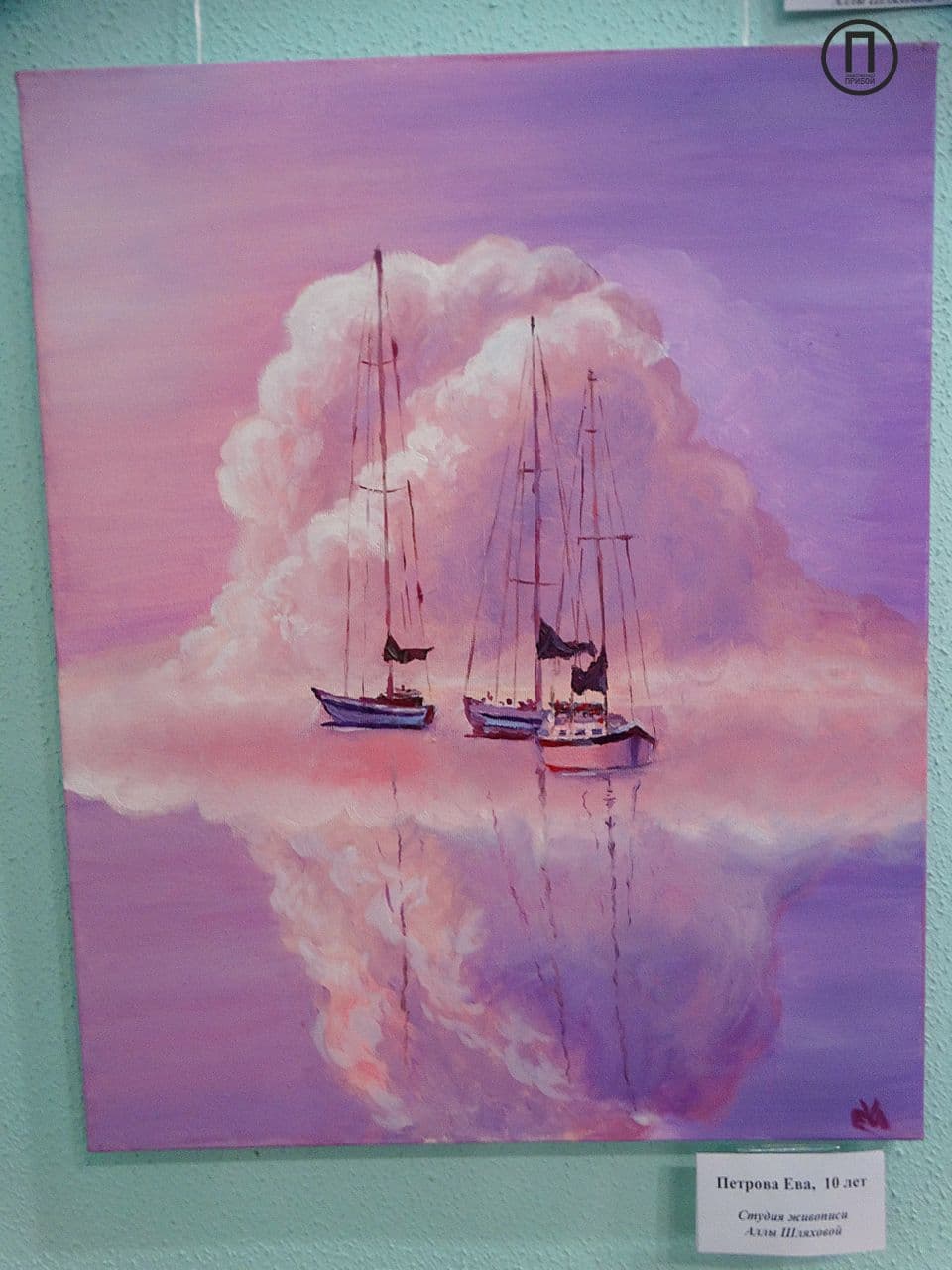 Отдельный зал отведен для работ 10-летней Евы Петровой. Девочка рисует с 4-х лет. Ну а помимо увлечения изобразительным искусством Ева также ходит в музыкальную школу, учится играть на фортепиано и гитаре, занимается вокалом и парусным спортом. Ну а в будущем все-таки хочет стать художником.