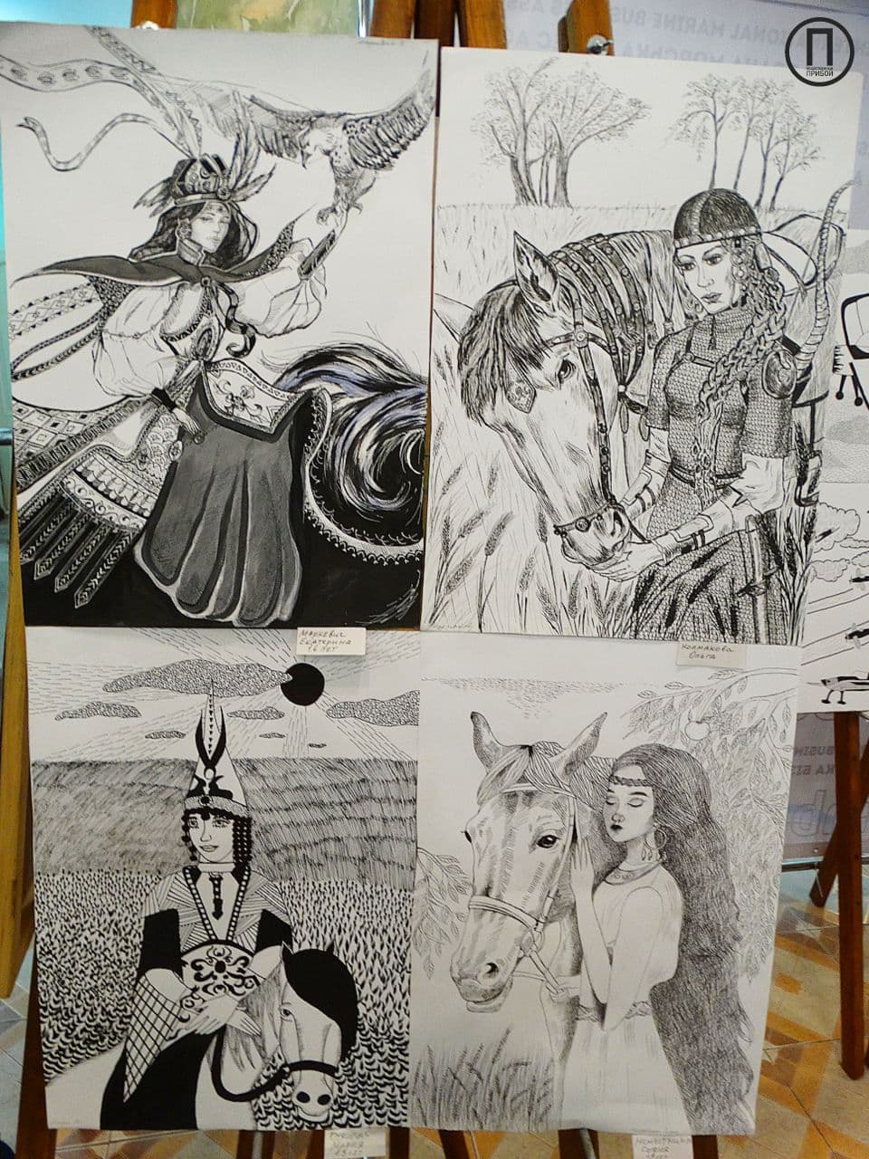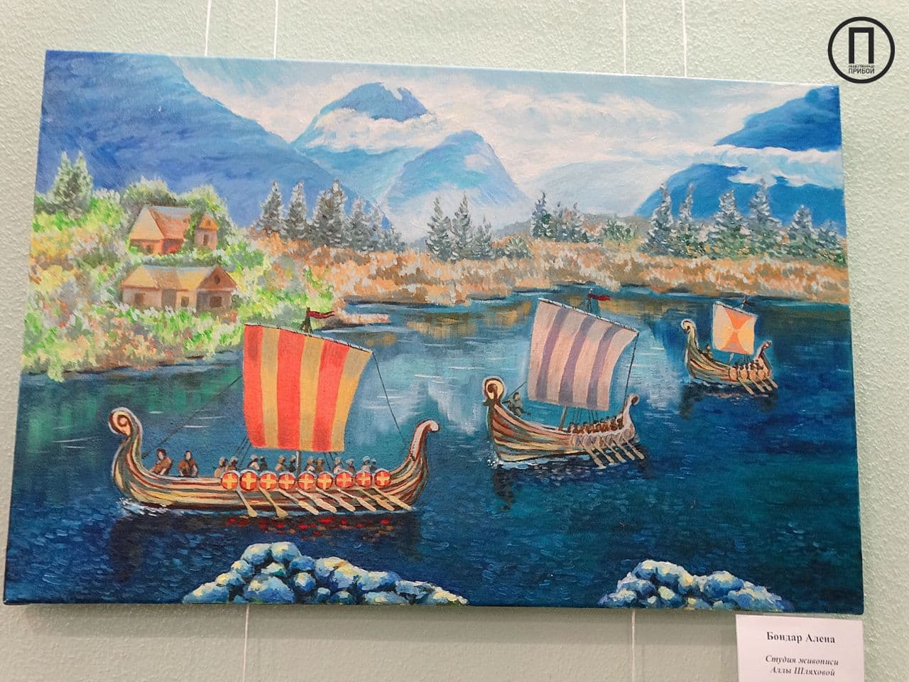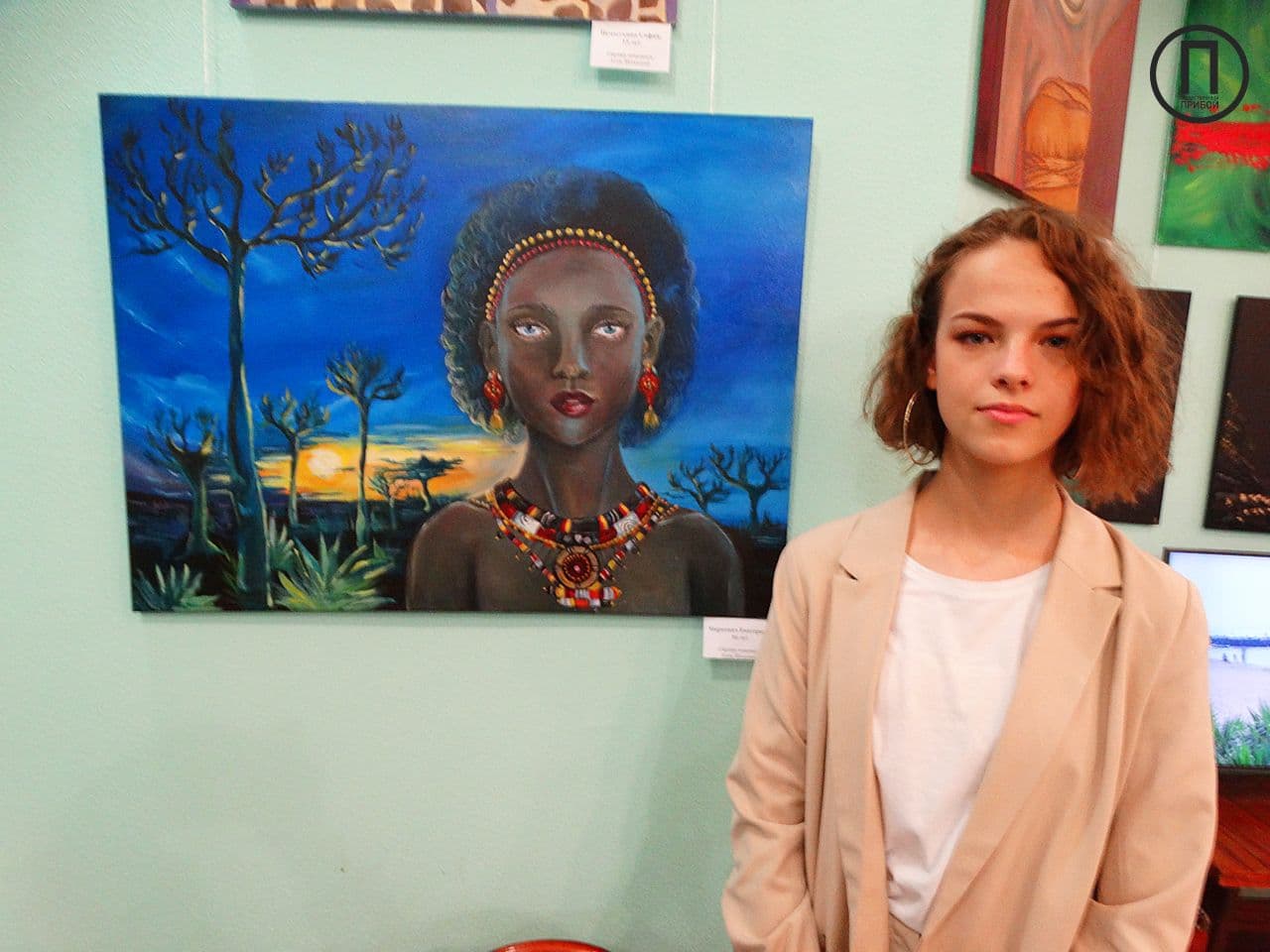 Отдельный зал отведен для работ 10-летней Евы Петровой. Девочка рисует с 4-х лет. Ну а помимо увлечения изобразительным искусством Ева также ходит в музыкальную школу, учится играть на фортепиано и гитаре, занимается вокалом и парусным спортом. Ну а в будущем все-таки хочет стать художником.