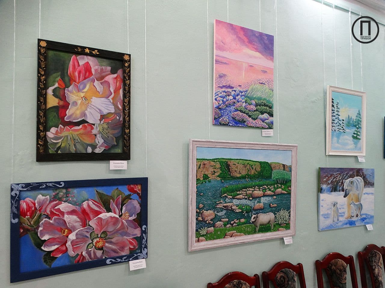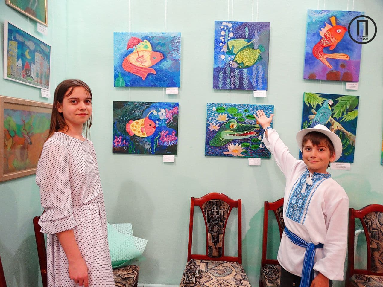 Начинающего художника зовут Миша, он вместе со своей сестрой Машей сегодня участвует в открытии выставки, где помимо них еще около 25 детей презентуют свои работы публике. Все они ученики художницы Аллы Шляховой, которая сейчас ведет студию живописи в Крыжановке.