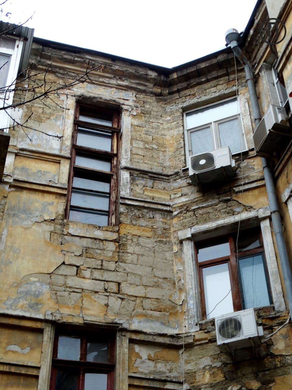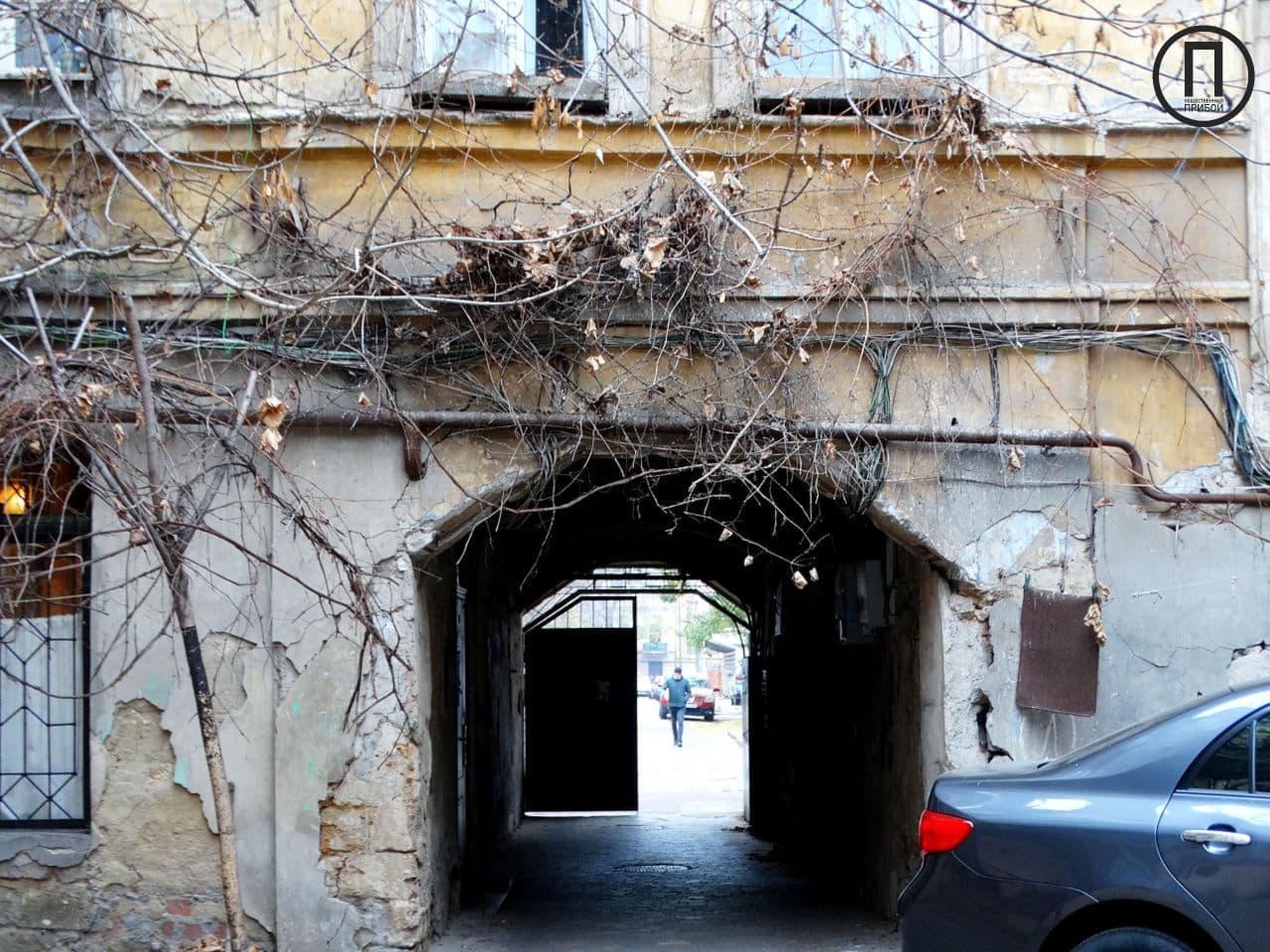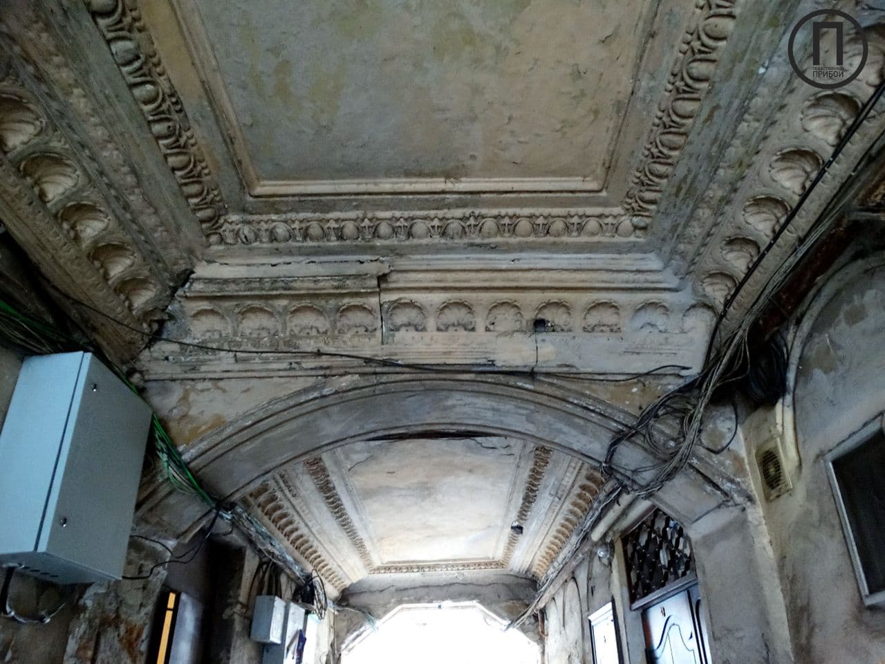 Тендер уже завершен. Подрядчик обязуется разработать проектную документацию до мая 2022 года. Стоит отметить, что весь дом не в лучшем состоянии, однако речь идет только о реставрации фасада и кровли. Также, в прошлом году жильцы одной из квартир начали строить мансарду и, по словам соседей, в доме появились новые трещины. Потолок входной арки украшен лепниной. Внутри дома заметны следы обрушений.