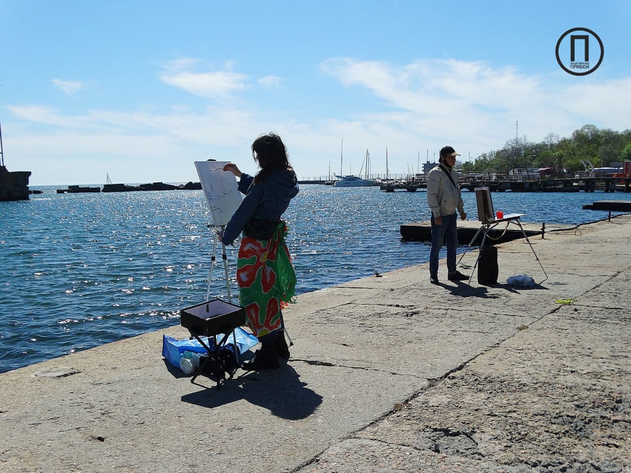 Ближе к 11.00 к Яхт-клубу стекаются художники из Союза маринистов. В последнее время они здесь частые посетители, и в скором времени обещают открытие выставки.