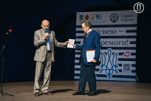 «В роли ведущего я выступал очень давно. А раньше вел мероприятия на основных одесский площадках, например, юморины. Выступал на мероприятиях в различных районах Одессы. Это было традиционно. Мероприятия были разнообразные- «День учителя», «День железнодорожника», «День полиции», поскольку я был еще и полицейским журналистом. Был председателем гражданского совета при Главном управлении МВД Украины в Одесской области. Меня пригласила на это мероприятие Валерия Медведева. Мы с ней ранее работали«.
