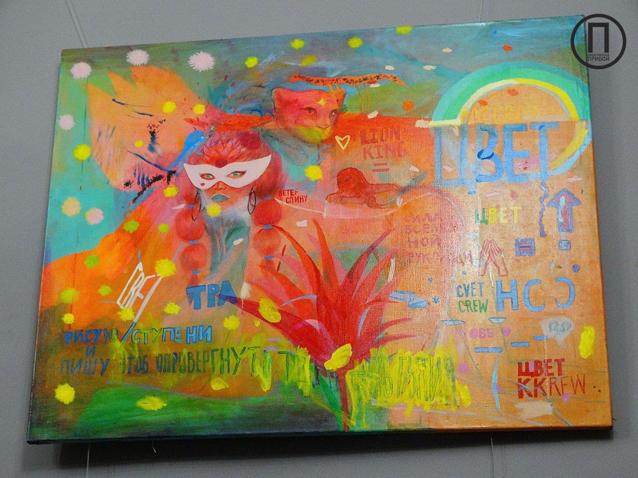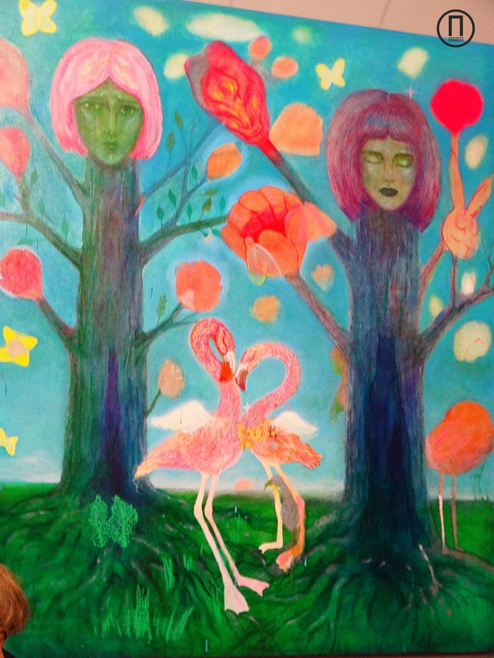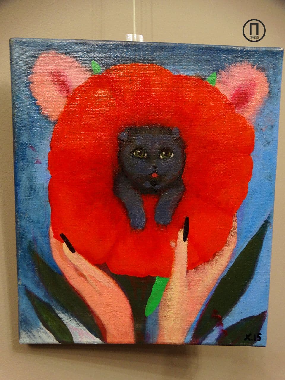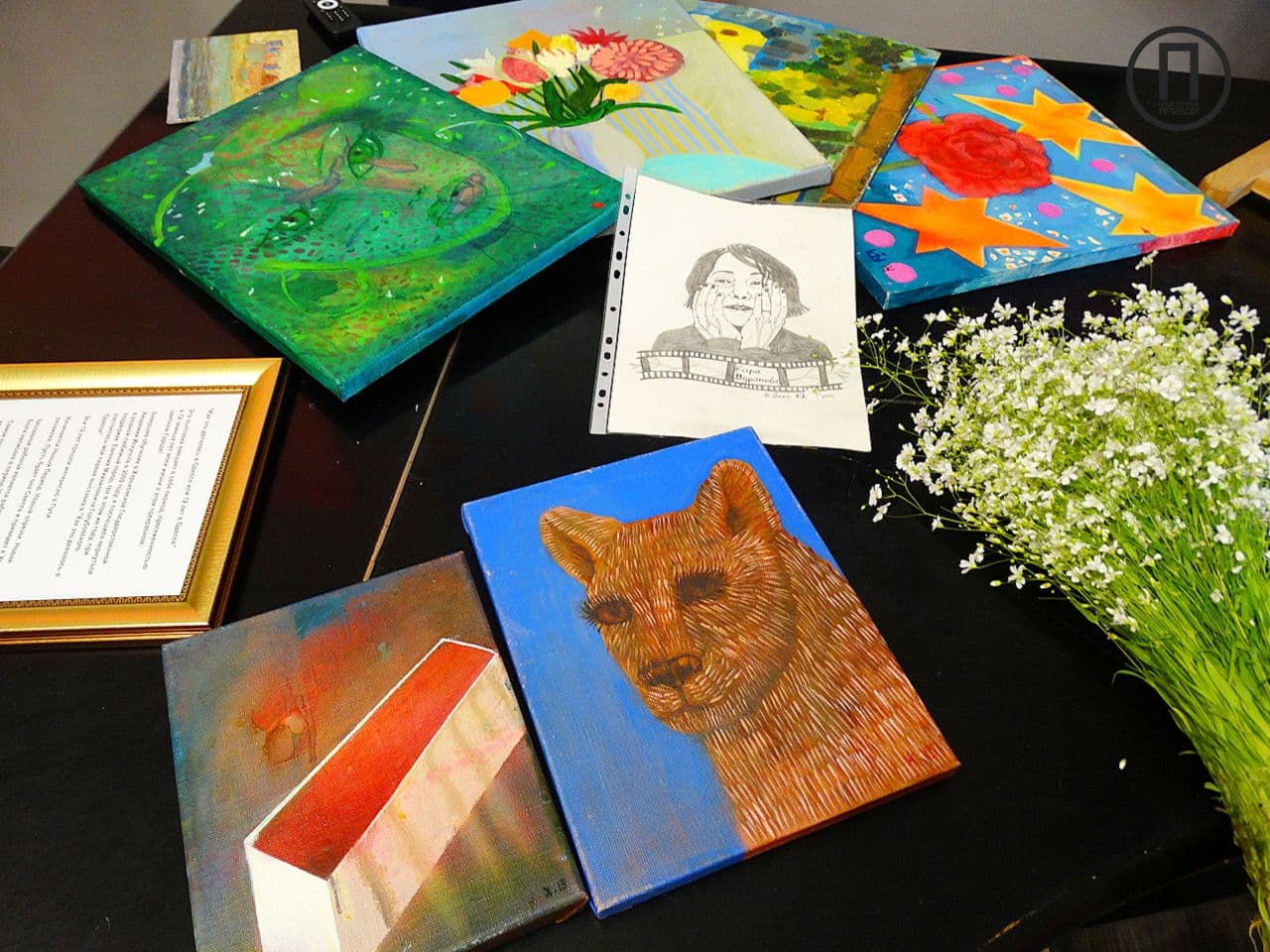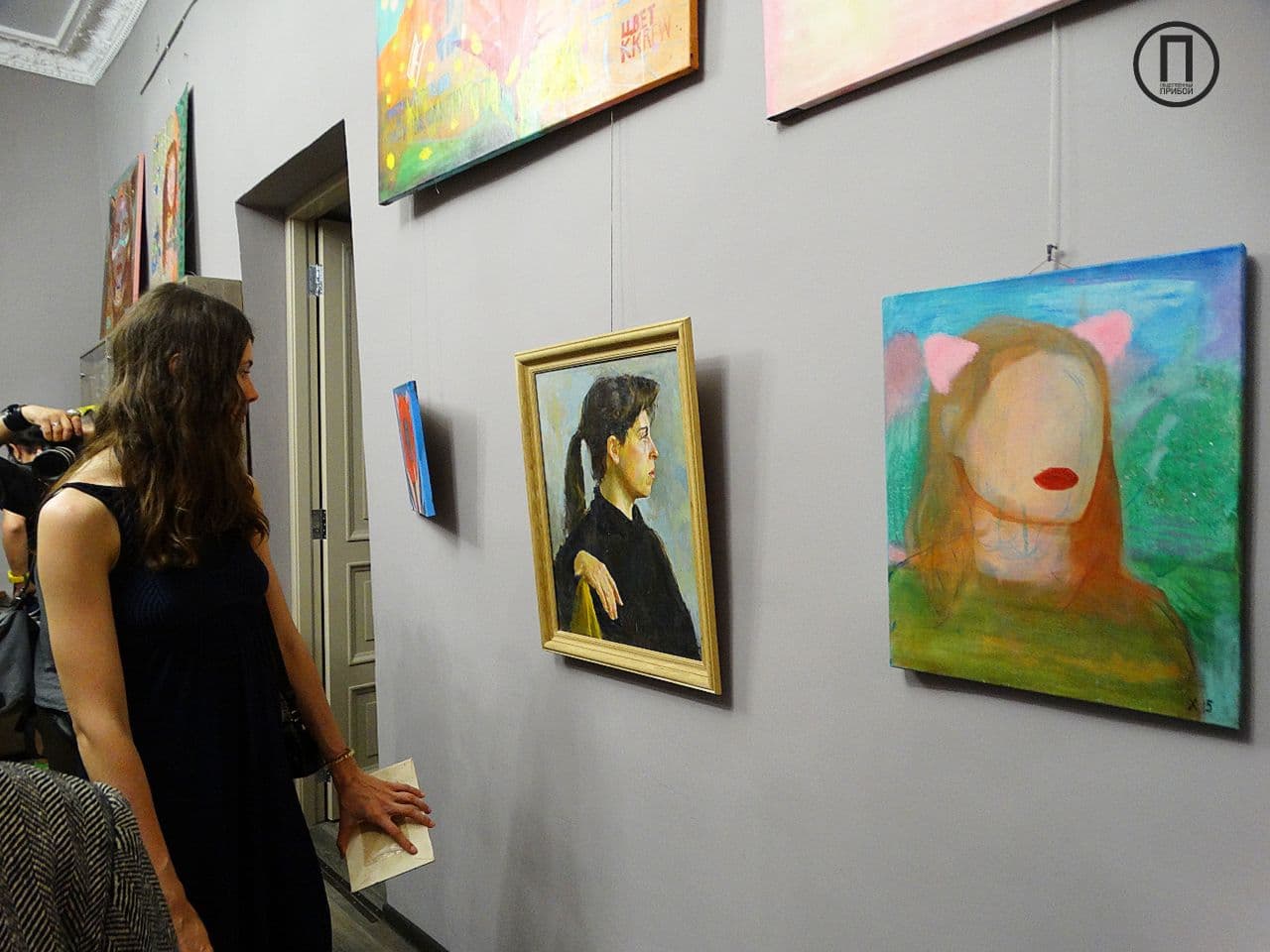 Одна из работ спрятана от зрителей, так как, по словам художницы, еще не закончена, однако гости иного мнения и даже спрашивают о цене полотна.