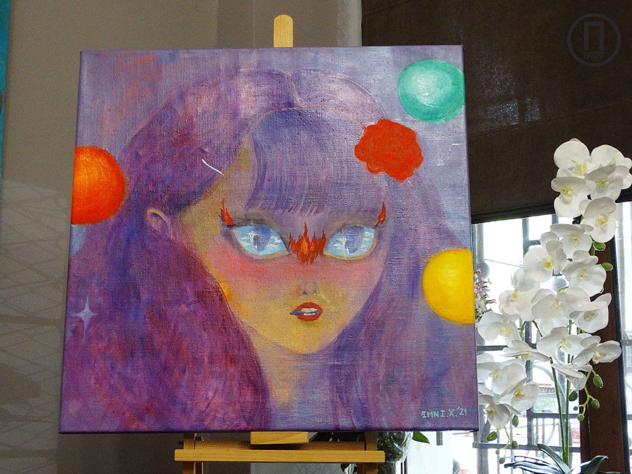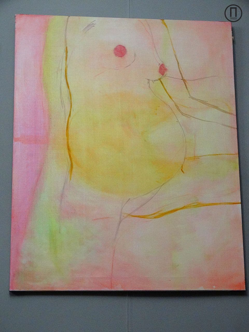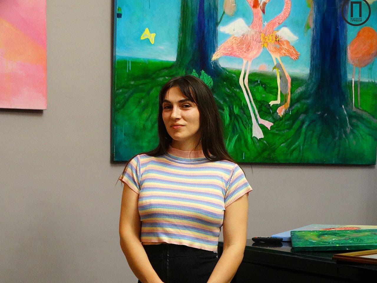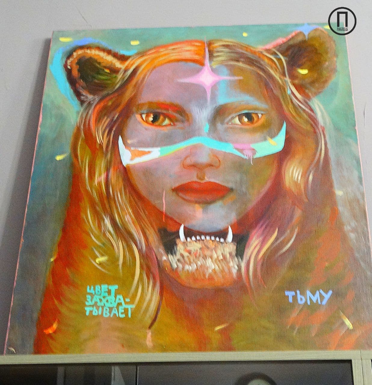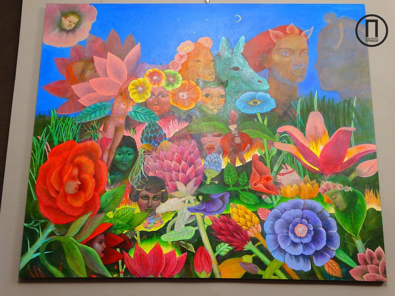 Одна из работ спрятана от зрителей, так как, по словам художницы, еще не закончена, однако гости иного мнения и даже спрашивают о цене полотна.