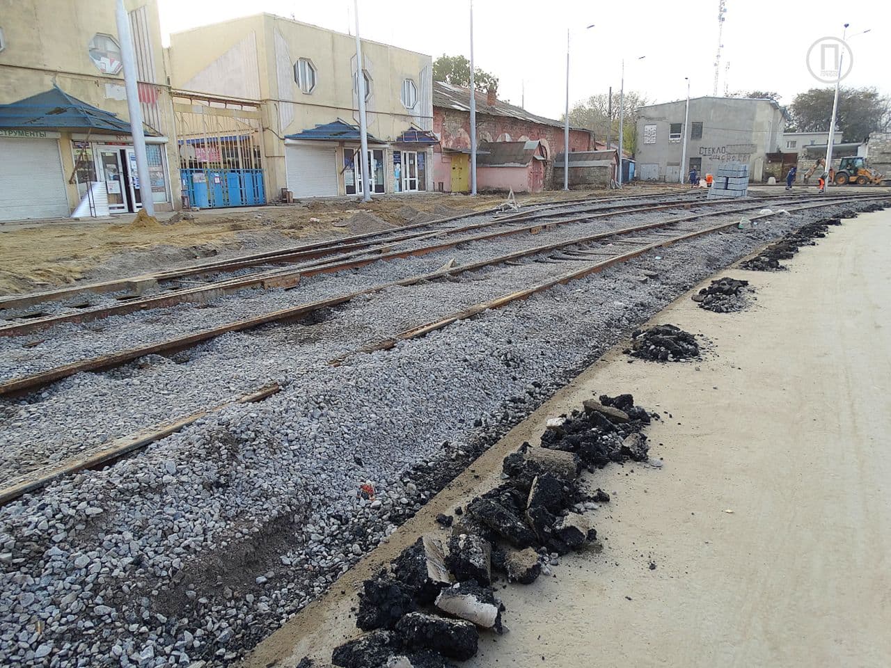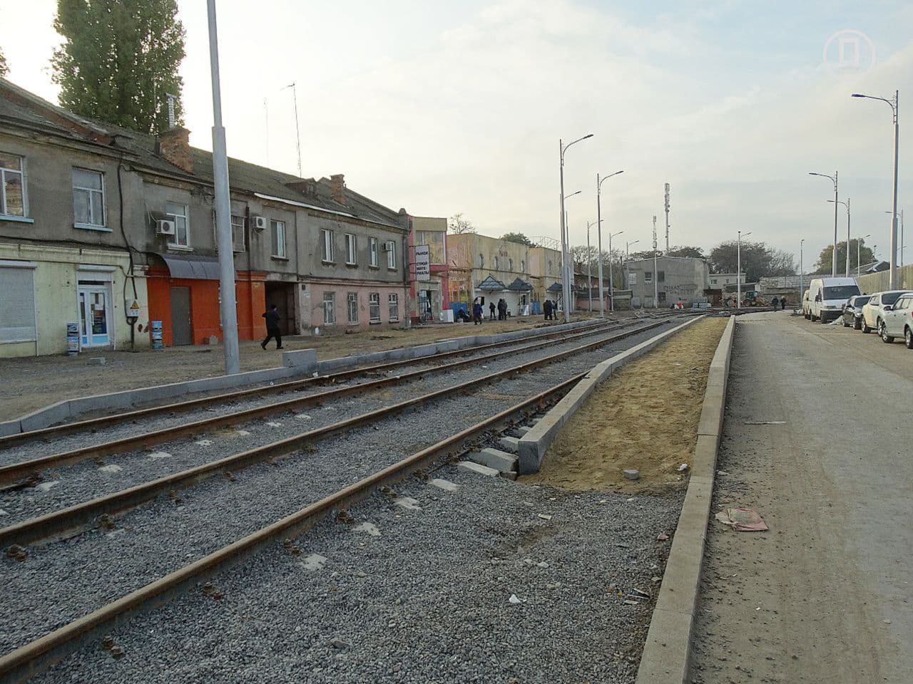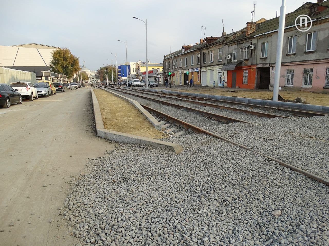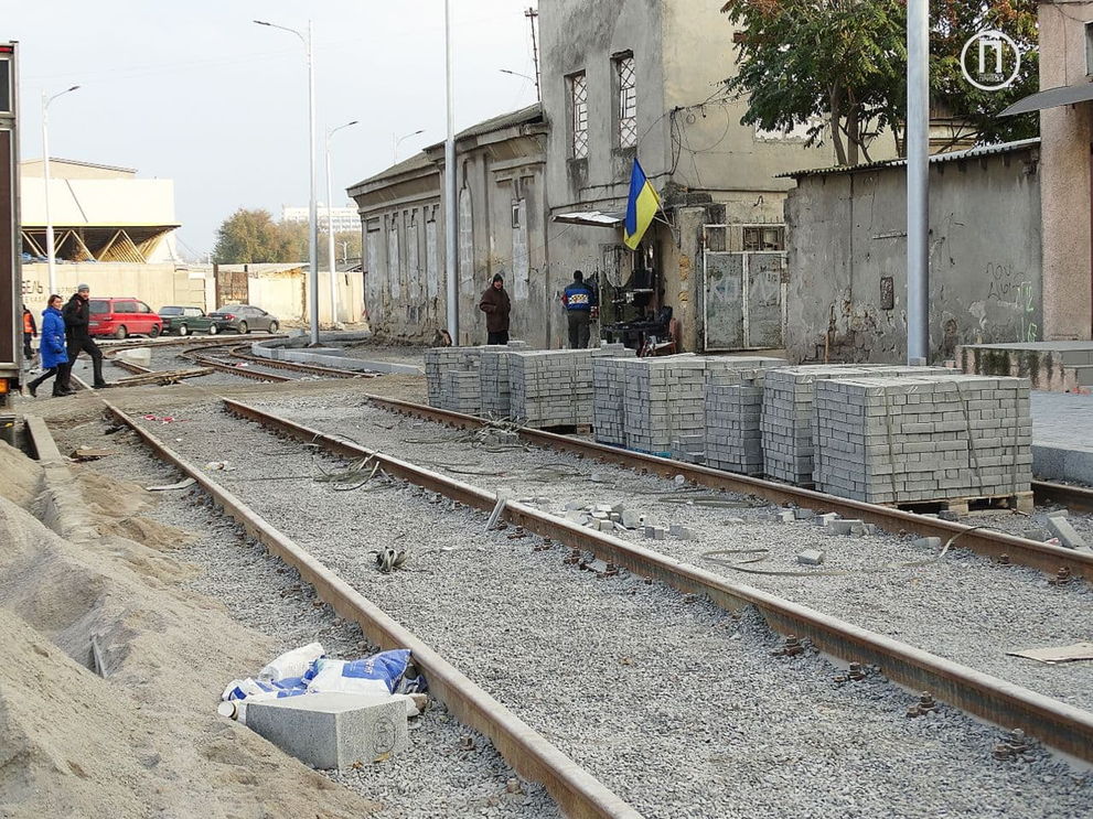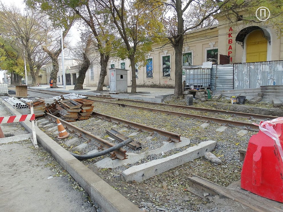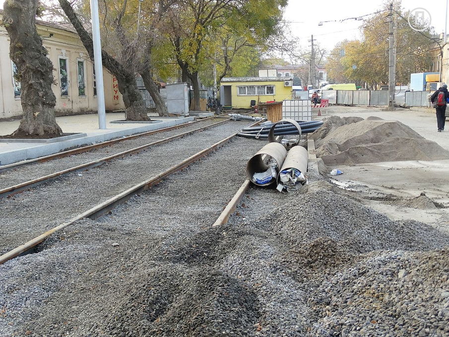 На данный момент трамвайное полотно проложили до улицы Екатерининской, а на тротуаре