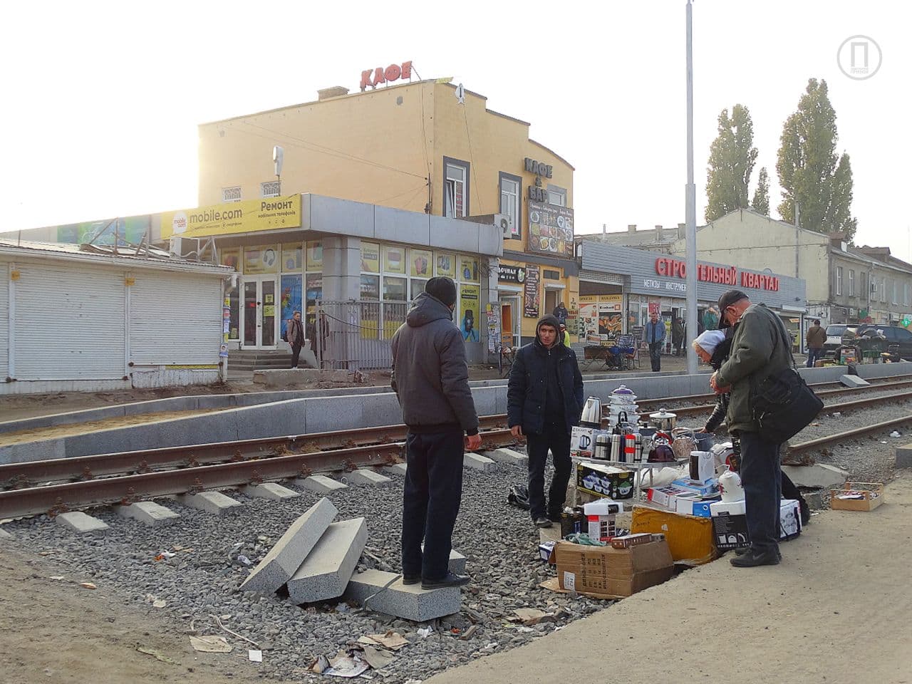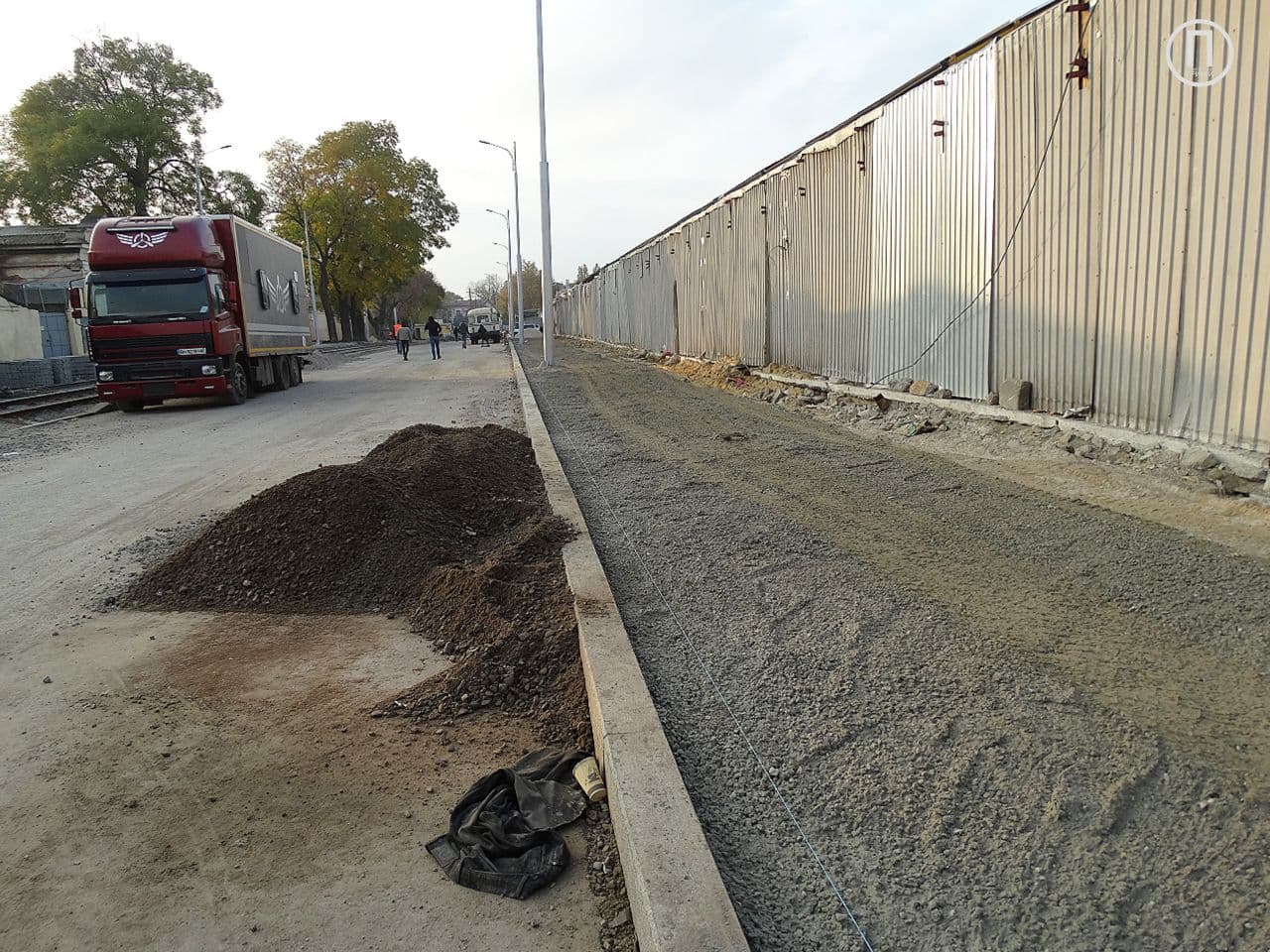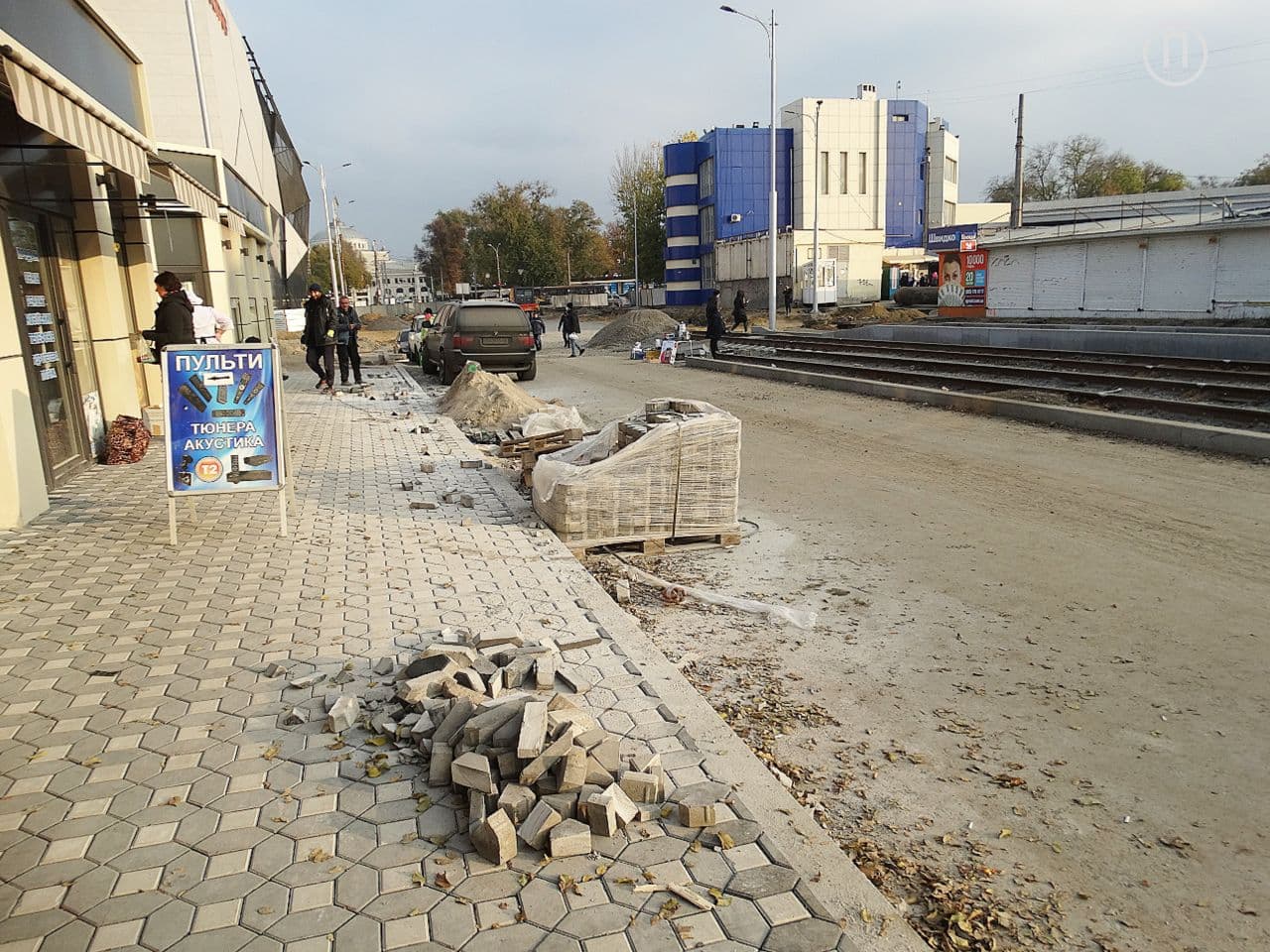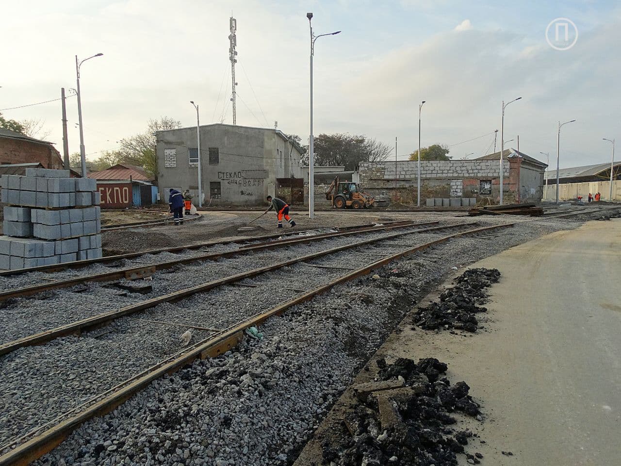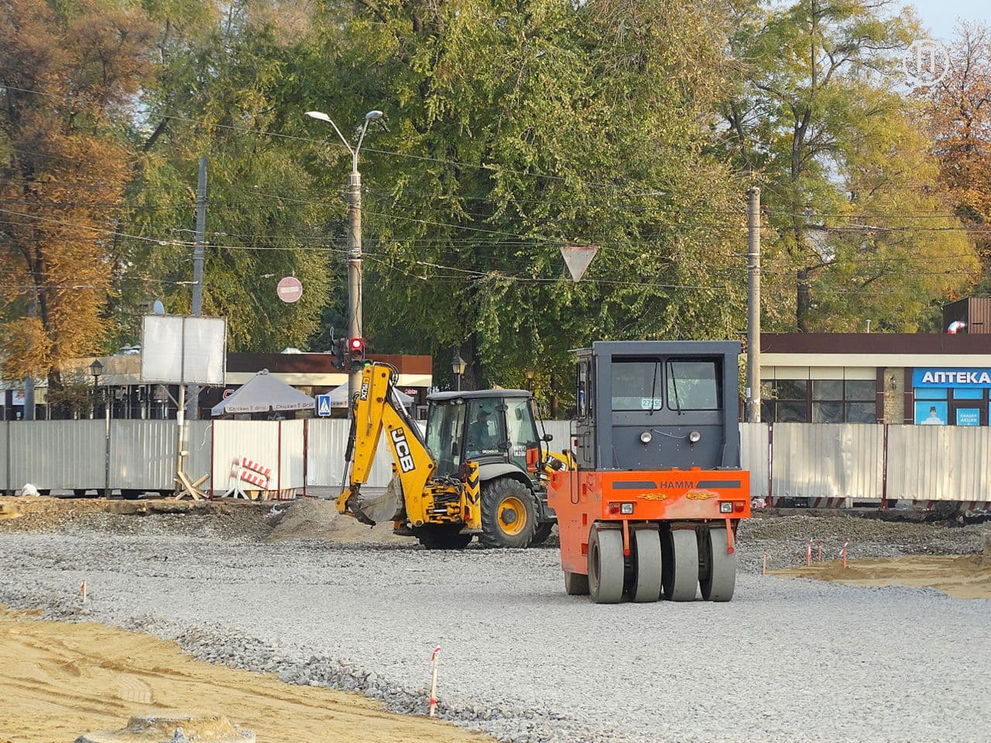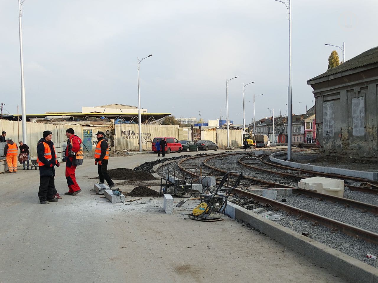 На данный момент трамвайное полотно проложили до улицы Екатерининской, а на тротуаре