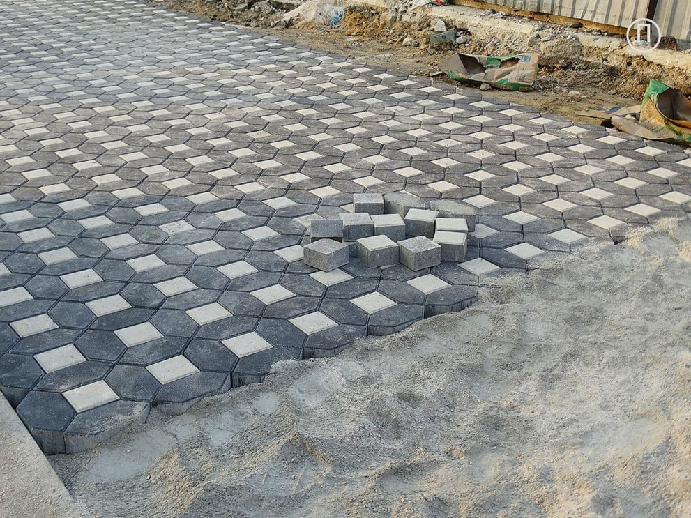 производят укладку плитки.