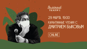 29 марта в 19:00 Зелёный театр приглашает на Карантинные чтения с Дмитрием Быковым, которые пройдут онлайн. Просмотр — свободный, на официальной странице Зеленого театра в Facebook.