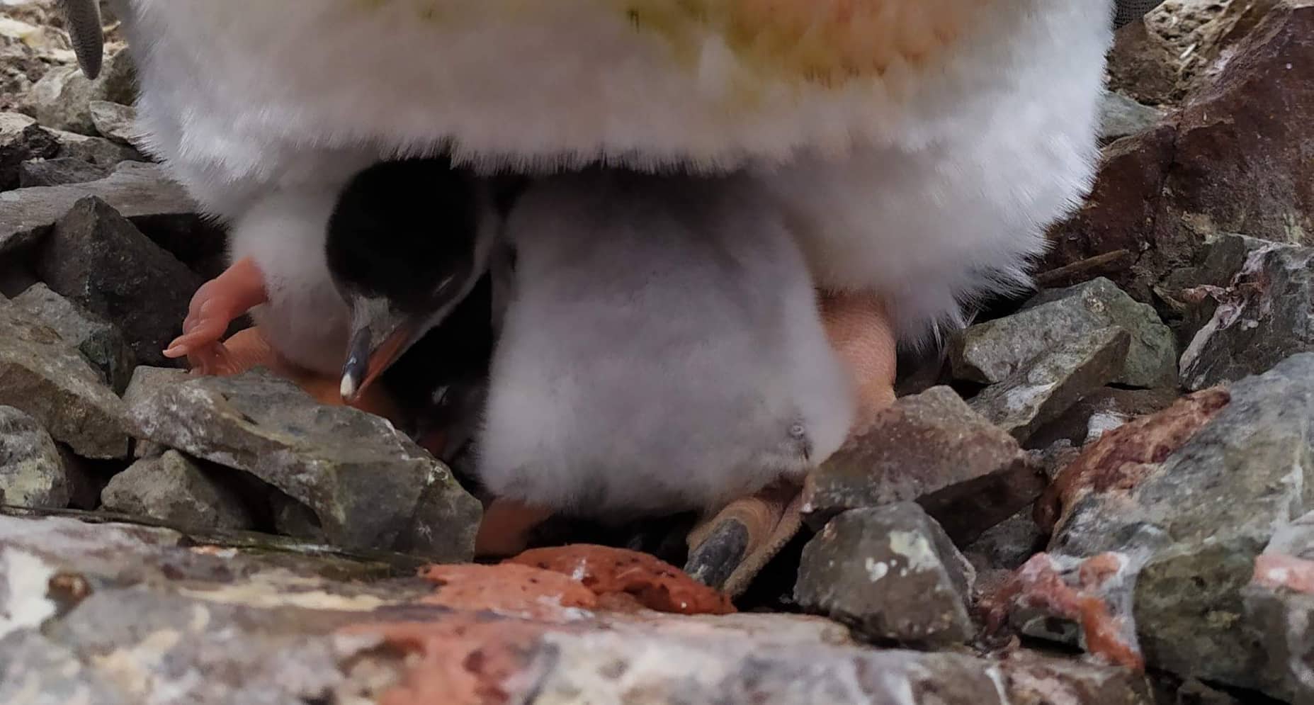 Еще 20-30 дней пингвинятка будут оставаться в гнезде, где за ними ухаживают родители. Кстати, малышей они кормят по очереди: пока один сидит на гнезде, другой добывает пищу в океане. Затем возвращается, меняет партнера и начинает кормить птенцов«.