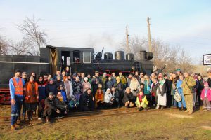 В минувшую субботу столицу украинских узкоколеек посетили 145 туристов и любителей железной дороги со всей Украины, среди них три туристические группы из Киева, Винницы и Одессы. Участников путешествия ждала уже традиционная поездка ретро-поездом с увлекательными экскурсиями, горячая уха и кулеш со шкварками на берегу Южного Буга, веселые украинские песни и танцы на рождественскую тематику, душистый глинтвейн и благотворительная новогодняя ярмарка от Гайша. Состав поезда был обычен: паровоз Гр-280 и четыре пассажирских вагона Pafawag.