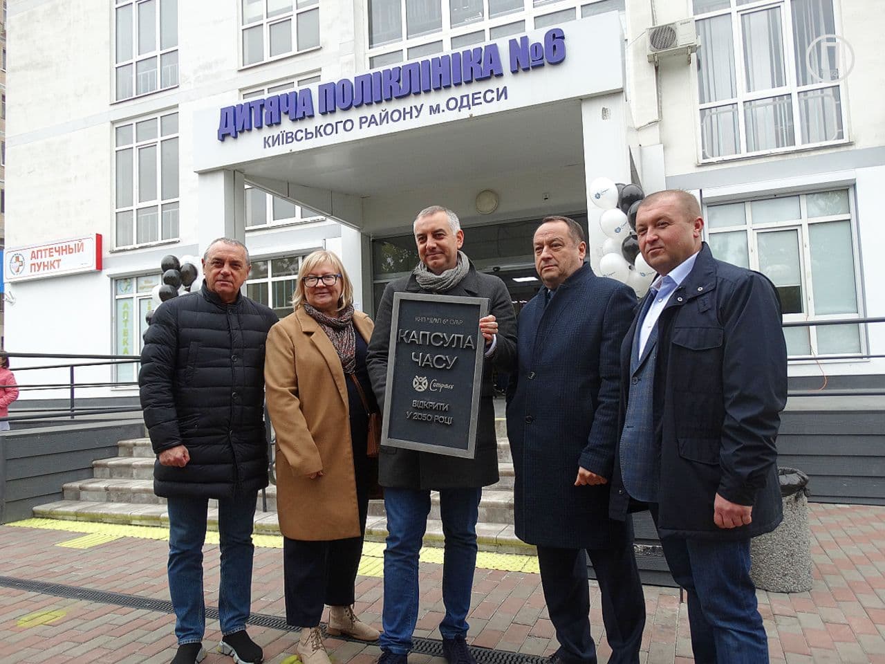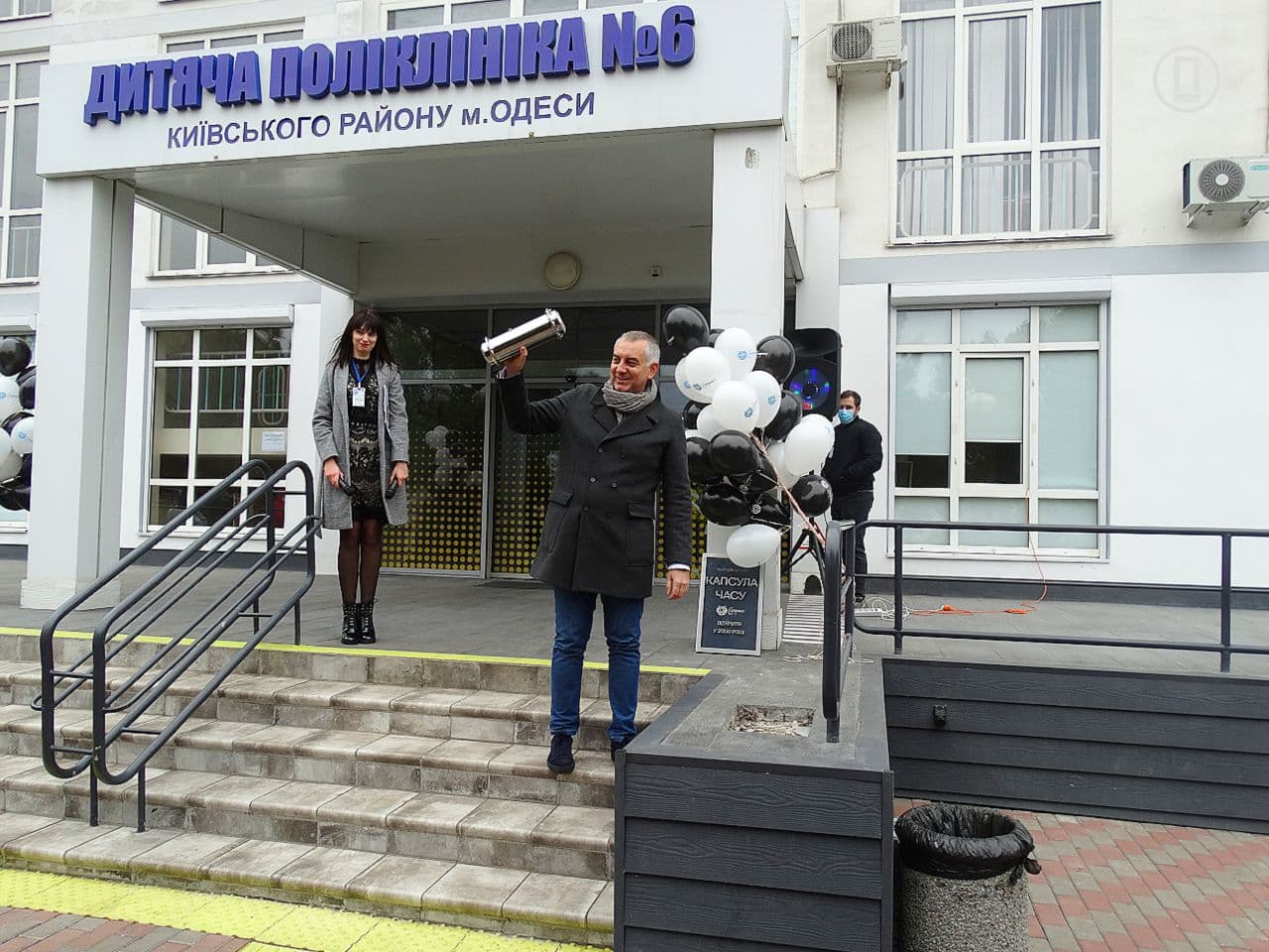 Сегодня, 10 ноября, у входа в здание детской городской поликлиники №6 была погружена капсула времени, в которой более 30 одесситов оставили послание потомкам.