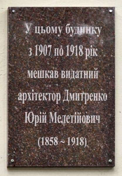 В ноябре 1908 года в одну из квартир дома №8 на Дерибасовской переехал архитектор Юрий Дмитренко. Об этом свидетельствует мемориальная доска, установленная на доме в 2017 году.  Еще имеет запись в газете «Одесский листок», от 23 ноября 1908 года: