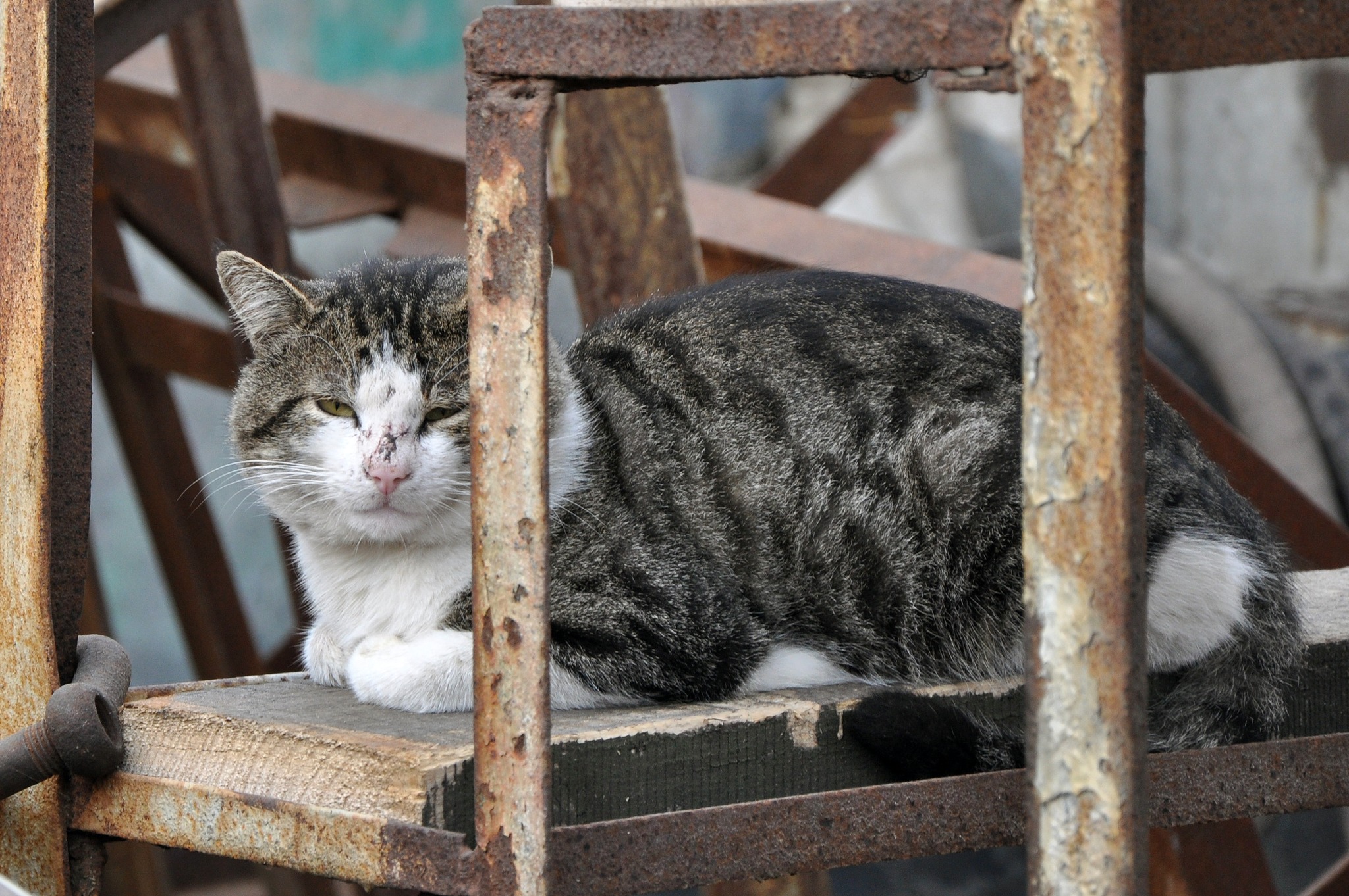 Василий с боевым позывным «Шпангоутом» еще молодым охотно ходил в море на кораблях и катерах Морской охраны. Попав однажды в сильный шторм, понял, что это для него уж слишком, возраст кошачий имел уже немалый, поэтому решил сойти на берег. На стоянке корабельно-катерного состава «Шпангоутом» уже более десяти лет. Строгий вид и колоритные шрамы подчеркивают воинственную натуру и жизненный опыт подлинного «морского котика».