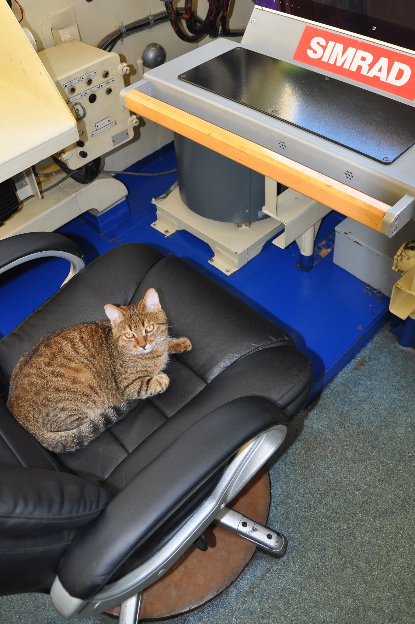Спокойная уравновешенная философиня Матильда, для своих просто Машка. Появилась среди плавсостава сравнительно недавно. Говорят, «перевелась» из Военно-Морских Сил. Любит вдумчиво всматриваться в горизонт, особенно в открытом море на ходах. Если кто-то заскучает – обязательно это почувствует и всегда приласкает своим размеренным мурлыканием. Если собратьев необходимо отвлечь от печальных мыслей, умело ластится и усаживается на колени.