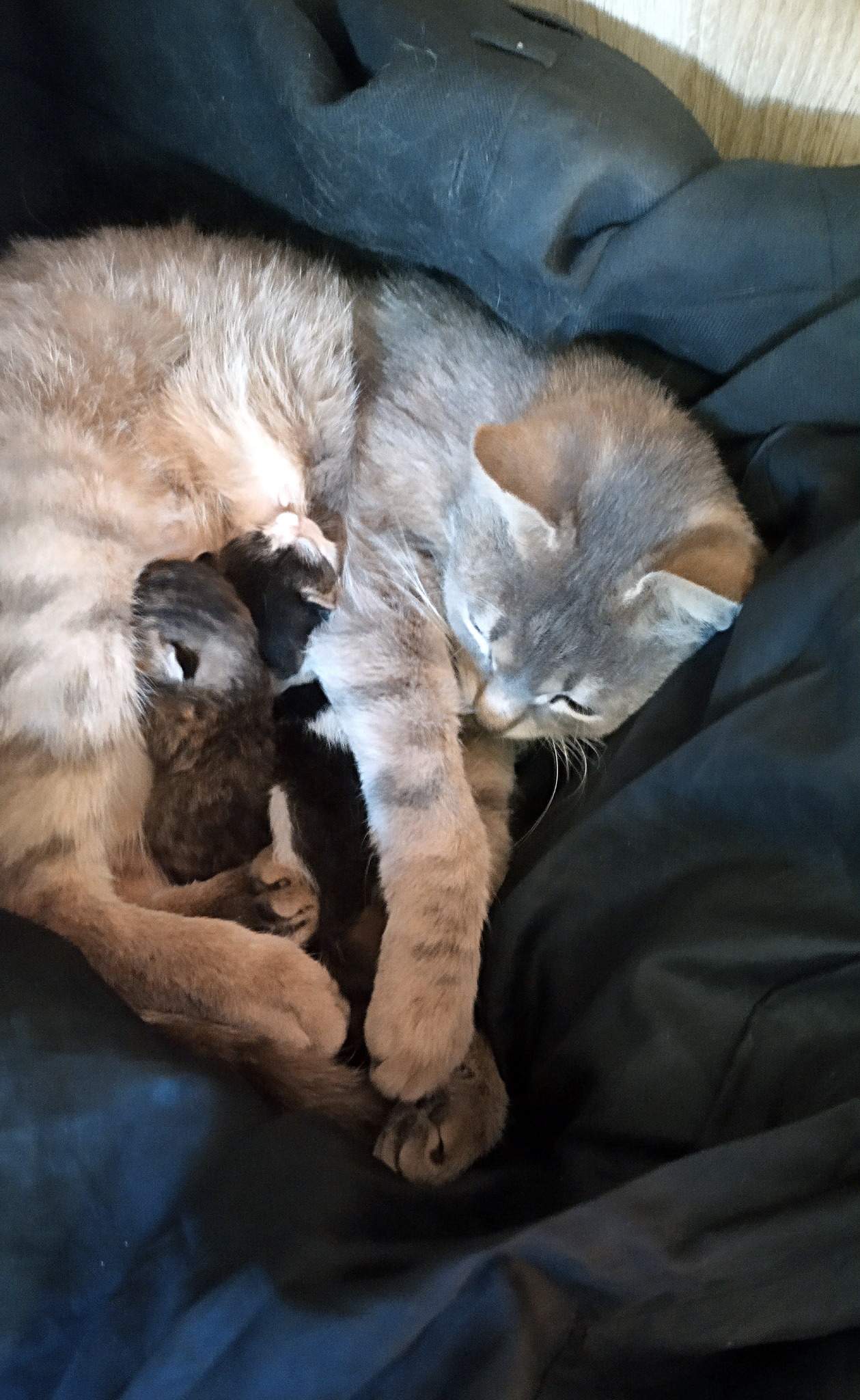Матильда такая заботливая и по отношению к собственным ребятишкам. Приведя котят, первые пару месяцев оберегала их от стрессовых морских походов. Как только на корабле заводились двигатели, Машка сразу быстро «эвакуировала» детей на берег, а с возвращением корабля в пункт базирования, семья радостно возвращалась на борт.