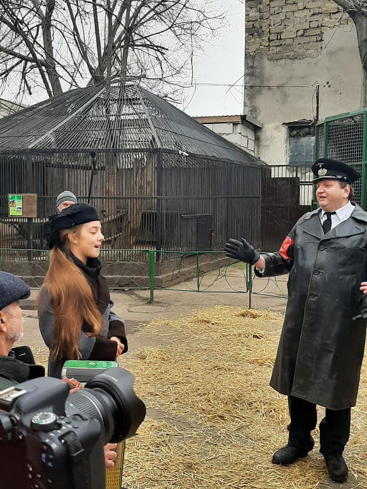 «В 1941 году зоопарк эвакуировать не удалось. Одесса находится в оккупации немецко-румынских войск. Снимается сцена, когда на домашнем совете семьи Генриха Бейзерта принимается решение организовать на территории зоопарка силами сотрудников швейную мастерскую, доходы которой позволят кормить животных, — рассказали на киностудии.