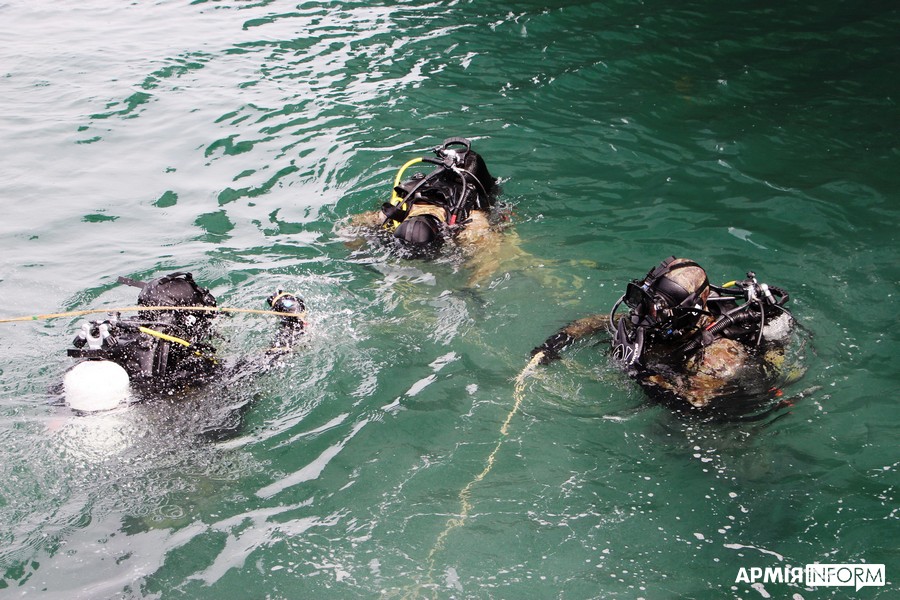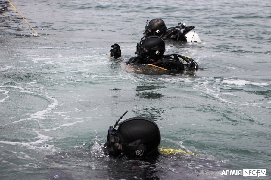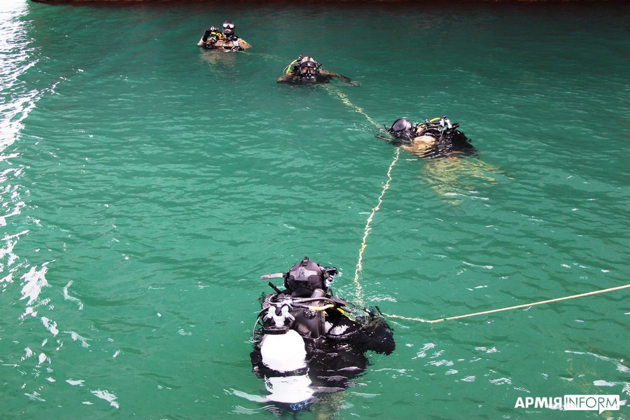 Как сообщил АрмияInform заместитель командира подразделения специального назначения ВМС, спуски под воду проходили на глубину до 10 метров. Главная идея тренировок — поиск, идентификация и выявление любых взрывоопасных предметов в акватории Одесского порта.