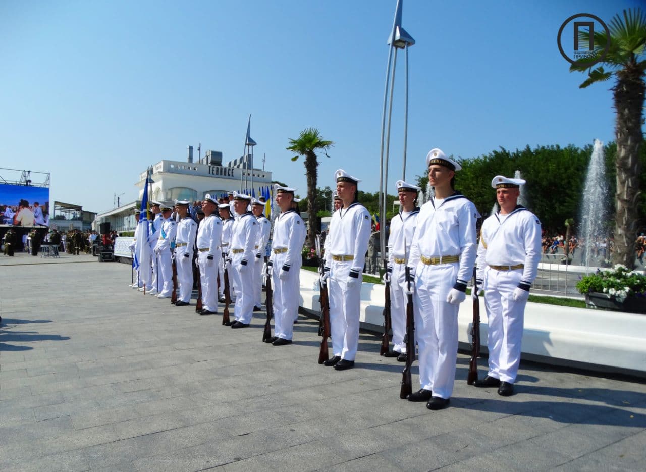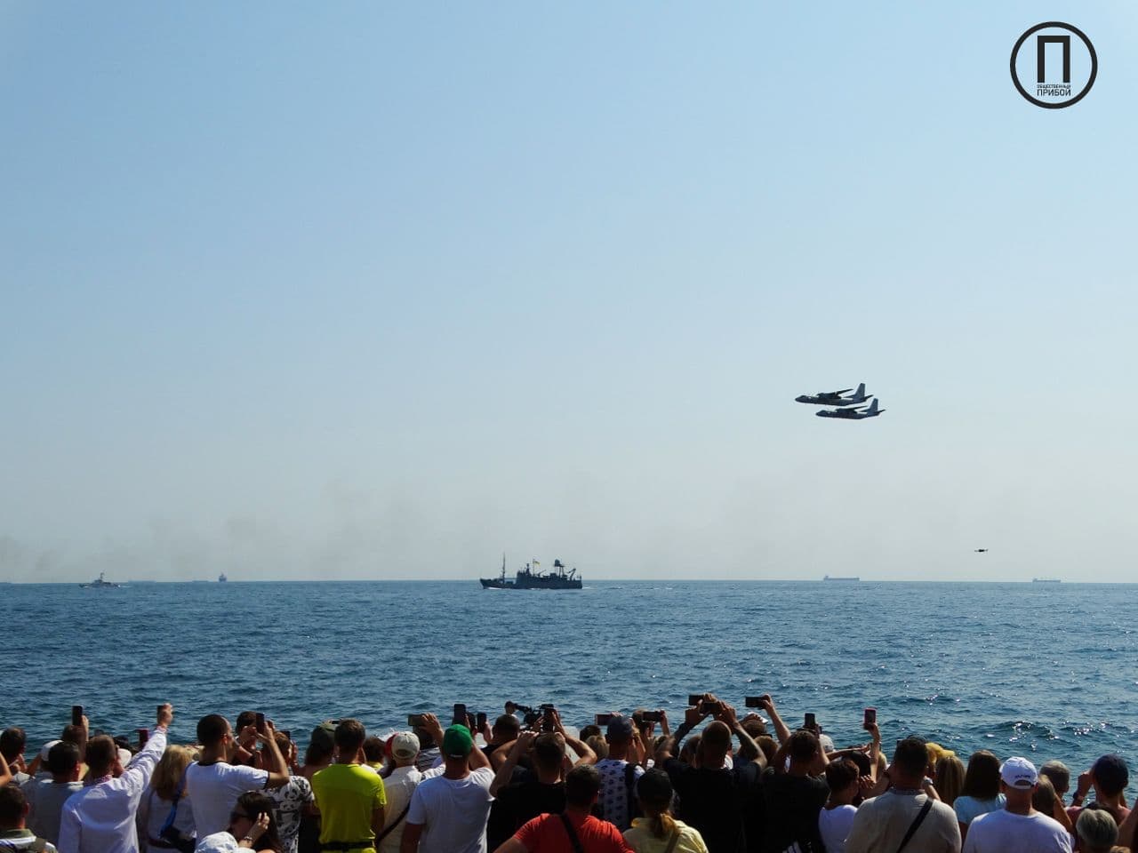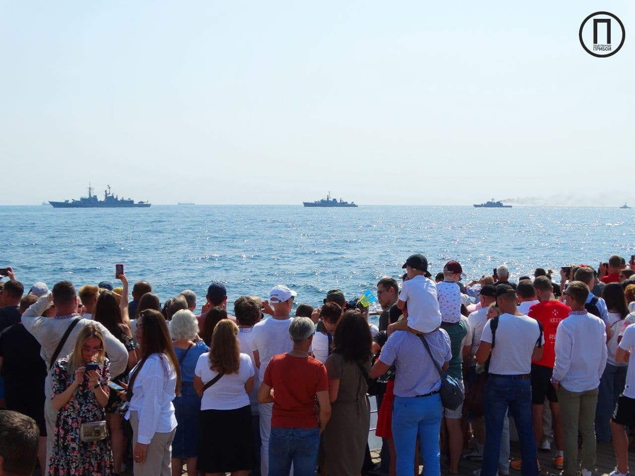 Завершил торжество военно-морской парад, который все желающие могли наблюдать с Ланжерона, а таких оказалось немало: пляж и смотровая площадка парка Шевченко были заполнены людьми.