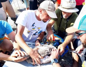 В Украине подобная уникальная процедура проходит впервые. Из 192 птенцов фламинго, появившихся на свет в этом году на территории нацпарка «Тузловские лиманы», 18 получили украинские паспорта в виде желтых колец с кодовыми номерами UA01-UA18.