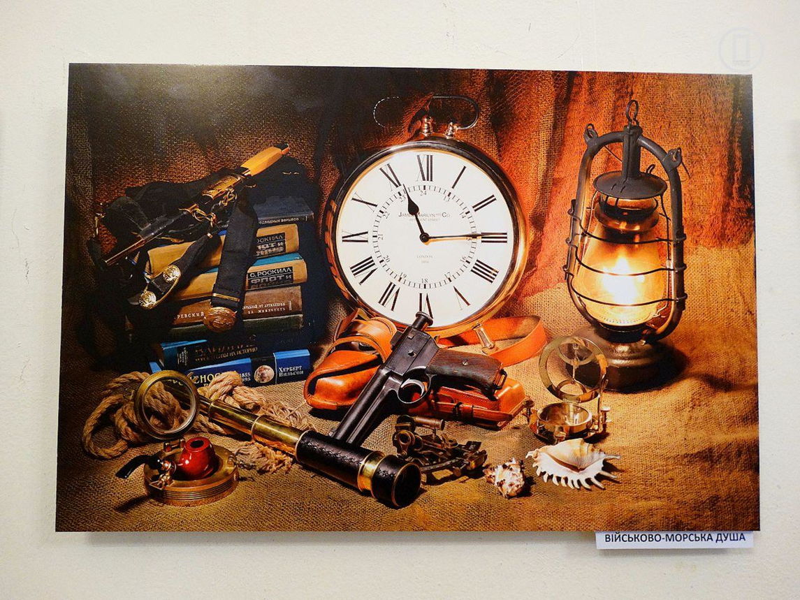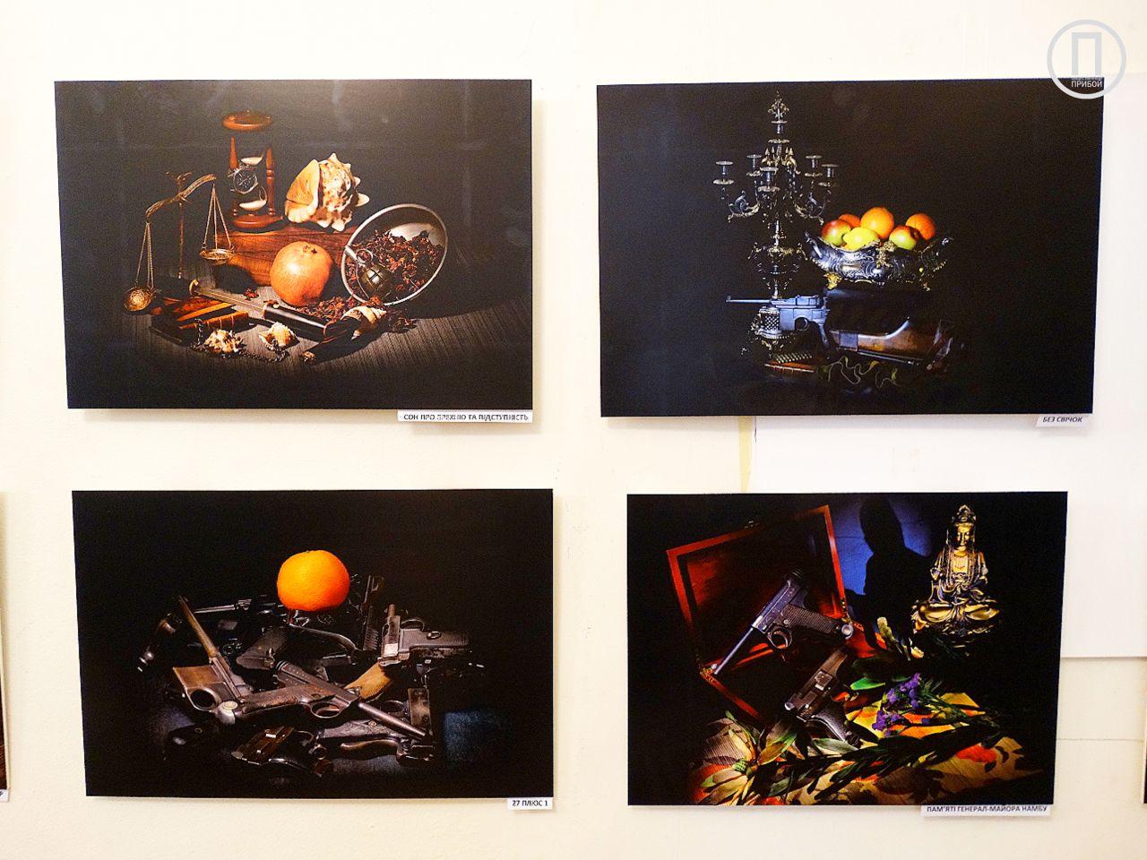 Все работы сделаны за период с 2015 по 2020 год. Экспозиция разделена на два зала,  в одном — представлены натюрмортные работы отдельного фотопроекта «Аллегории былых времен». Здесь зритель может наблюдать  аллегорические сюжеты, в которых встречаются довольно редкие образцы исторического оружия. Все натюрморты фотопроекта «Аллегории былых времен» собраны и изданы в Киеве в одноименном альбоме, который можно будет приобрести тут же на выставке.