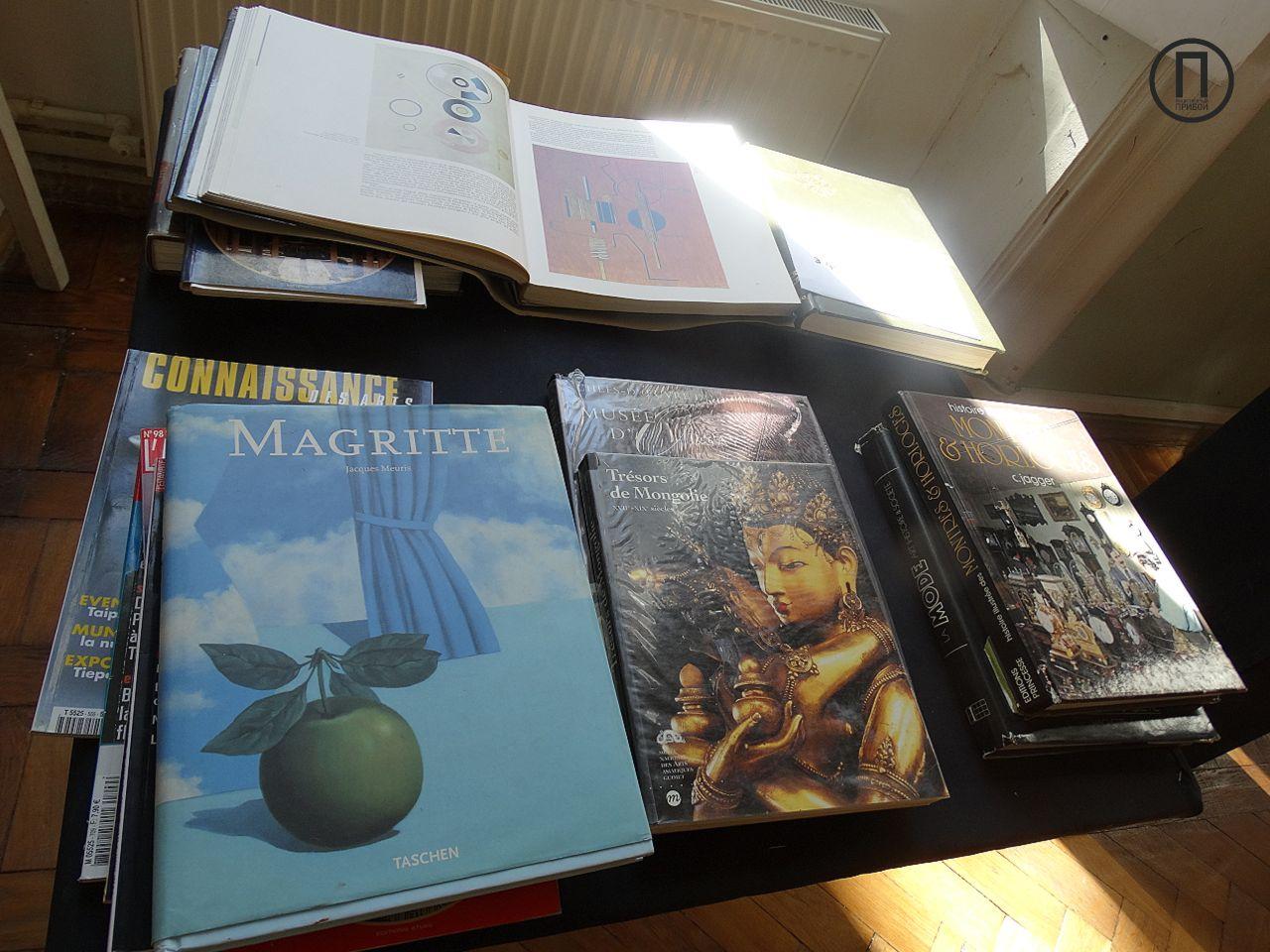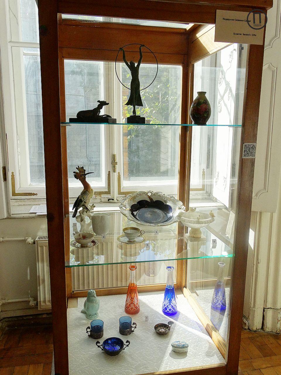 На выставке представлены картины Сюзанны Савари, предметы декора, а также французские журналы по искусству, подаренные художницей.