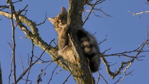 Во время последнего визита в Тарутинскую степь команде Rewilding Ukraine посчастливилось встретить лесного кота, охраняемого Красной Книгой Украины. Вероятно, кошка сидела высоко на дереве, грелась на солнышке и величественно игнорировала людей.