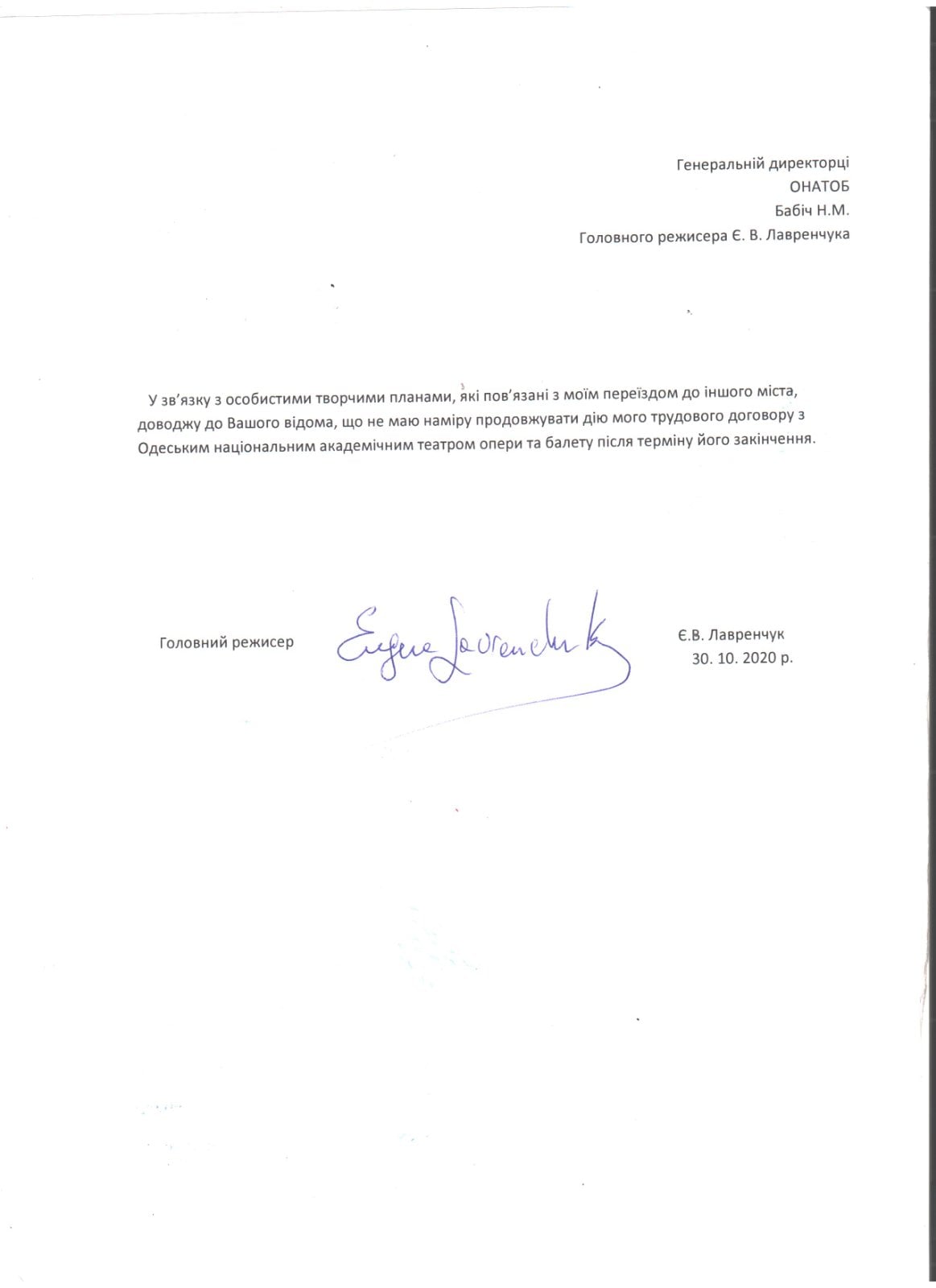 «На основании изложенного, считаем, что сообщение Лавренчука является сплошной ложью и попыткой опорочить имя и репутацию Одесского национального академического театра оперы и балета и его руководителя Бабич Надежды Матвеевны«, — этим заканчивается сообщение от театра.