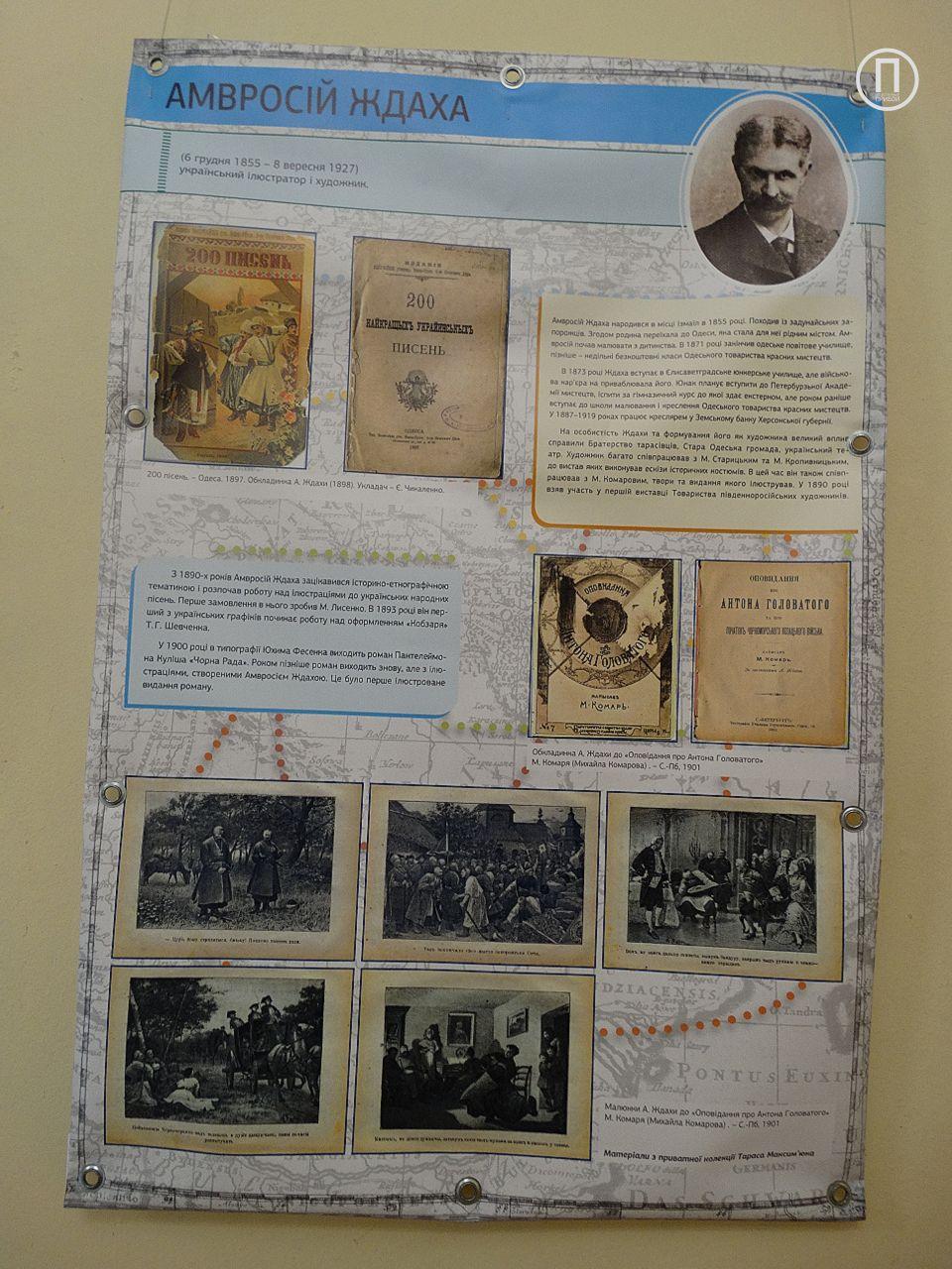 На выставке не просто экспонируются уникальные старинные издания, здесь посетители погружаются в историю книгопечатания в Украине. Такая идея была реализована сотрудниками двух музеев: Музея книги и книгопечатания Украины (Киев) и Одесского литературного музея. Уже существующий выставочный проект сотрудники литературного музея дополнили своими материалами из фондов. В частности, они касаются издателя Ефима Фесенка и художника Амвросия Ждахи – личности, без которых сложно представить историю книгопечатания в Одессе.