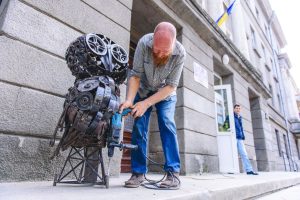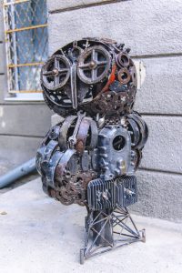У входа в Одесский колледж стандартизации, метрологии и сертификации, который располагается на пересечении улиц Спиридоновская и Новосельская, установили стальную скульптуру из деталей машин. Автор скульптуры — известный одесский скульптор Кирилл Максименко.