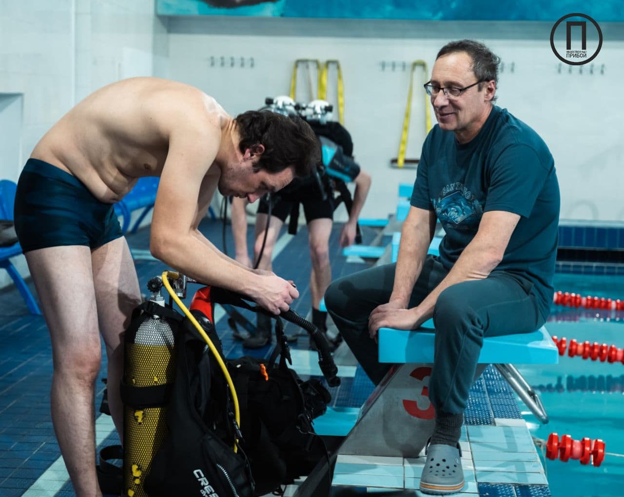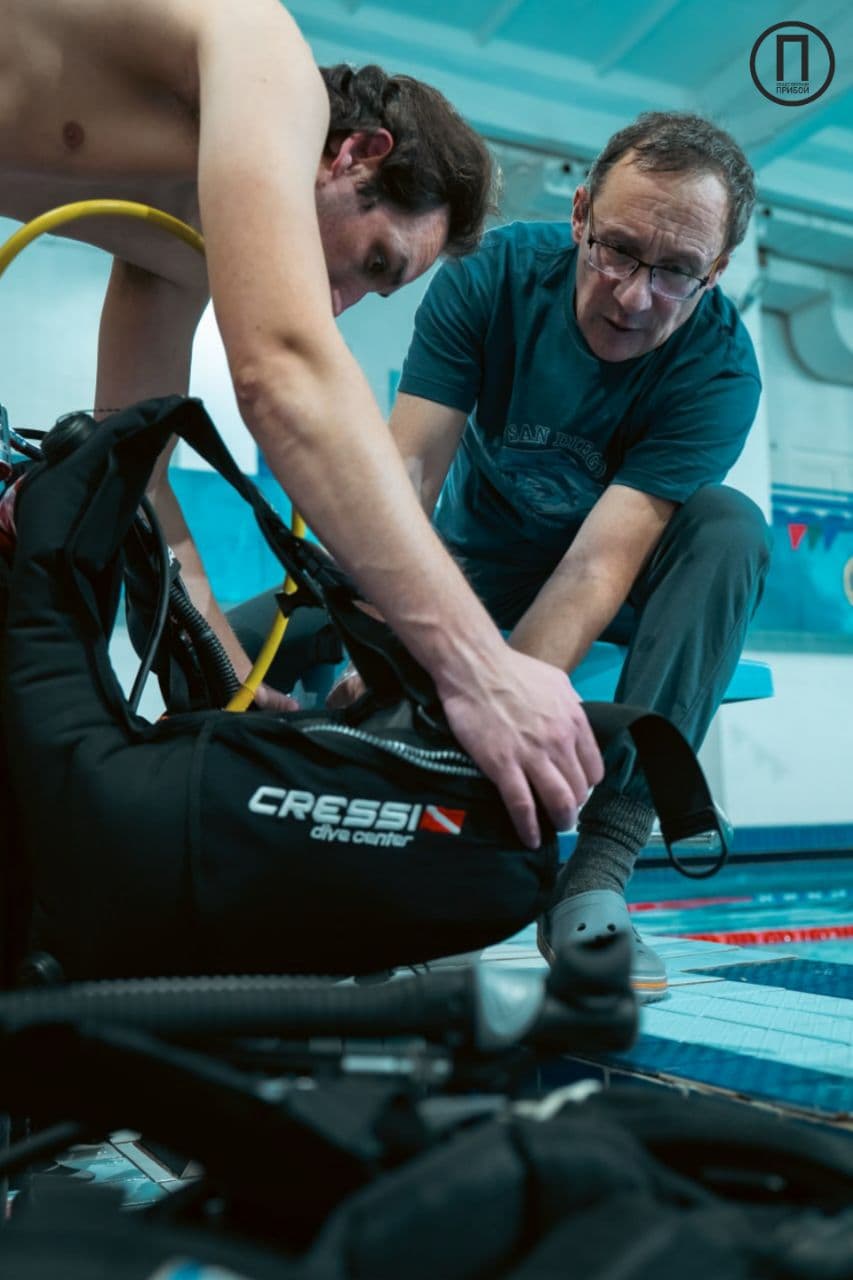С разрешения Владлена Евгеньевича мы посетили одну из его плановых тренировок в бассейне «Динамо». Сборы начинаются задолго до самой тренировки – почти за два часа. Владлен Евгеньевич за это время наполняет баллоны, а тем, кто пришел раньше, рассказывает удивительные истории и помогает с подбором снаряжения. Подводных видов деятельности и спорта очень много, но прежде всего, стоит разделять водолазов и дайверов. Первые — выполняют конкретные задачи: военные, научные, ремонтные, инженерно-строительные и многие другие. Водолаз – это прежде всего профессия, а дайвинг – увлечение, вид активного отдыха. Еще есть многочисленная армия спортсменов-подводников. Подводный спорт имеет значительное многообразие видов: это скоростные виды подводного спорта, подводное ориентирование, фридайвинг и подводная охота; одним из необычных направлений является акватлон (подводная борьба).
