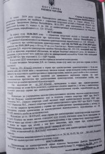 Материалы дела УПП в Одесской области были направлены в Приморский районный суд г. Одессы. В судебное заседание, которое состоялось 1 июля, Запорожан Д.В. не явился, однако предоставил заявление, в котором просил прекратить производство в связи с отсутствием состава правонарушения. Не исследовав множество доказательств, которые были в материалах дела, подтверждающие вину Запорожана Д.В. в совершении ДТП, судья Приморского районного суда г. Одессы Абухин Р.Д. выносит постановление, согласно которому закрывает производство по административному делу в отношении Запорожана Д.B в связи с истечением срока трех месяцев.