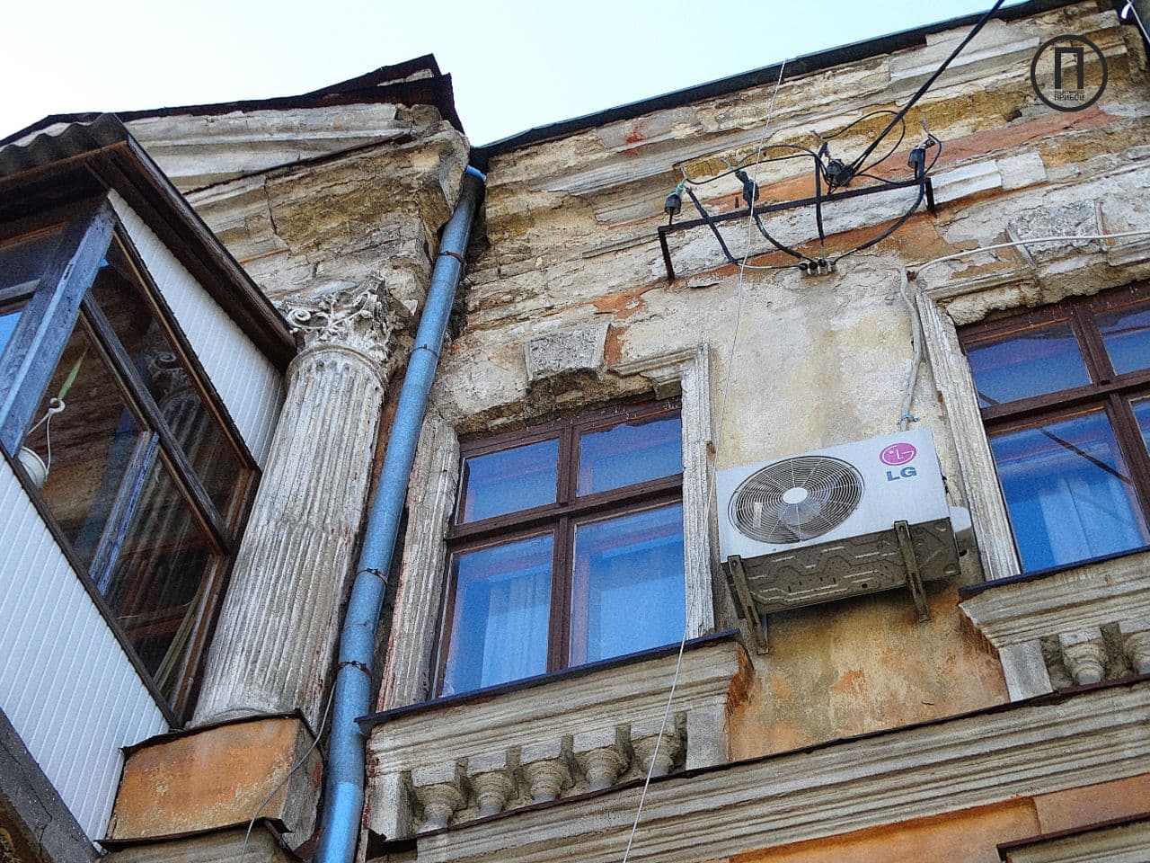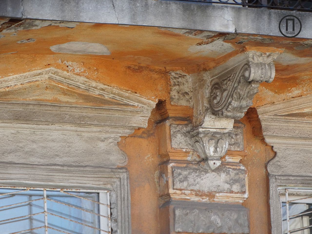 Заметно, что ранее здание имело величественный вид. Сегодня же, между центральными клонами на третьем этаже выпирает балкон; некоторые окна были поменяны и лишены скульптурных элементов. Если бы не скульптуры и колоны третьего этажа, то было бы сложно понять, что правая и левая части здания являются одним домом. Внешние блоки кондиционеров – лишь малая толика того, что влияет на общий вид здания.