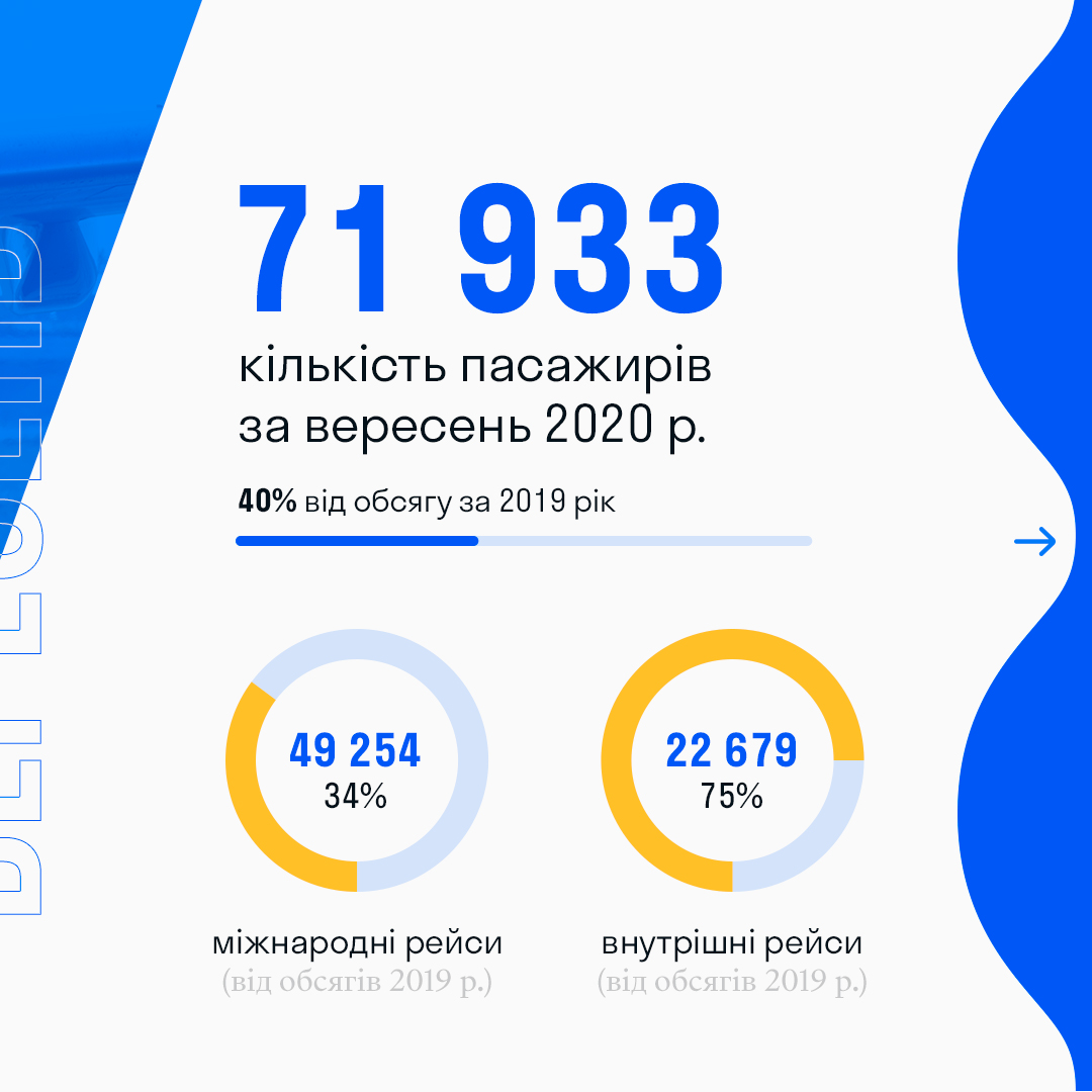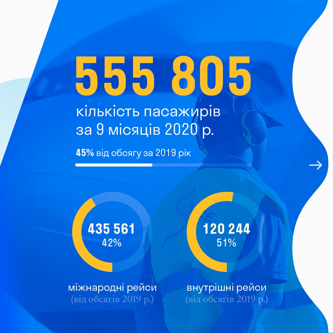 Аэропорт Одесса за 9 месяцев 2020 года снизил пассажиропоток до 555,8 тысяч пассажиров, что на 55% меньше, чем за аналогичный период 2019 года.