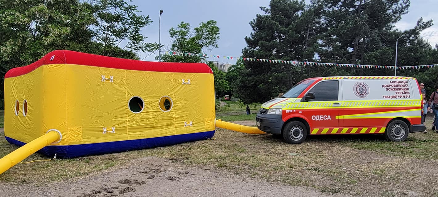 О «кубах жизни» было много разговоров после пожара на Троицкой. Теперь в Одессе их два, весом по 55 кг. Раскладываются они за несколько минут, занимаемая площадь – 25 м2. Добровольцы их уже протестировали. По результатам: за три минуты удалось эвакуировать 10 человек.