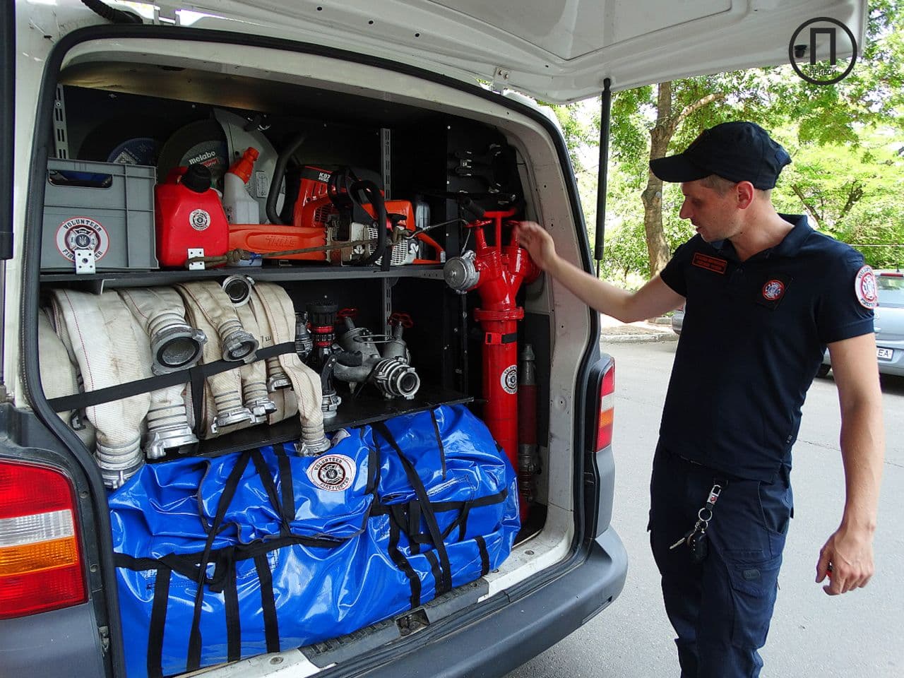Сегодня на смену вместе с Сергеем заступили Руслан и Евгений. Одесситы работают в государственной пожарной части по графику – сутки через трое. Сегодня у них выходной, поэтому спасатели заступили на добровольную службу. Смена начинается с проверки оборудования, чтобы в нужный момент, когда дорога каждая минута, оно было исправно. У добровольцев есть автомобиль, который им передали в пользование частная охранная компания «Олимп-Юг»; спасатели оборудовали его всем необходимым. А недавно, компания «Graf Development» передала в дар два «куба жизни».