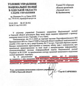 Материалы по данной ситуации инспекция передала в правоохранительные органы для открытия уголовного производства по статье 252 УК Украины — умышленное уничтожение или повреждение территорий, взятых под охрану государства, и объектов природно-заветного фонда.