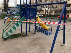 Городские детские площадки закрыли на время карантина — их обнесли защитными лентами, поскольку считают их потенциально опасными для распространения коронавируса.