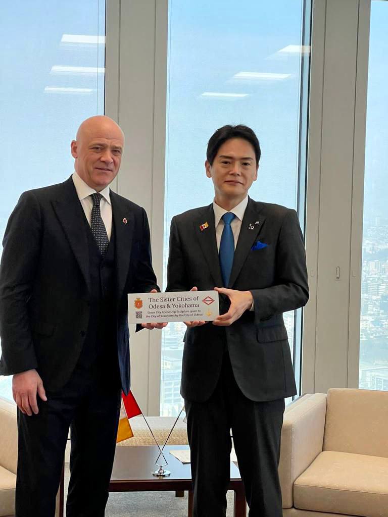 Під час зустрічі з мером міста Йокогама Одеський міський голова символічно передав табличку пану Такехару Яманака, для майбутнього її встановлення на фундаменті «Якоря-серця».