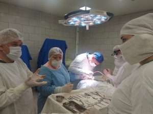 Під час дообстеження виявлено, що один зі щеплених уламків кісток находиться біля правого ока та викликає його випадіння. Фахівці Одеської обласної дитячої клінічної лікарні Ющак Ігор Александрович завідувач відділення нейрохірургії та Драгонюк Олександр Анатолійович – завідувач відділення оториноларингології розпочали складне оперативне втручання.