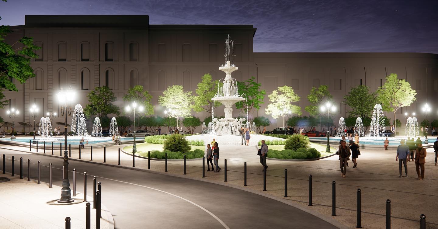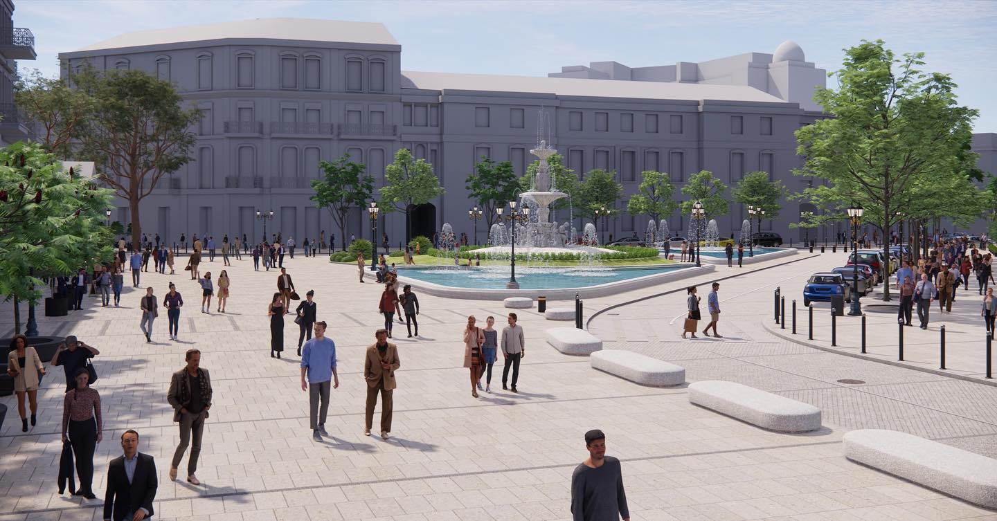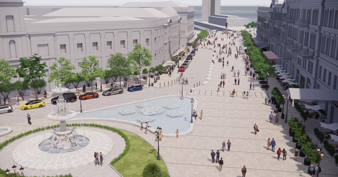 Замість пам’ятника ми пропонуємо зробити фонтан. Головна ідея – збільшення пішохідної частини площі й додавання нових місць для сидіння. Також додаються нові дерева обабіч площі, але так, щоб не перекривати вид на фонтан, на дюка, та з дюка на фонтан. Сама площа може використовуватись для концертів та ярмарок. Залишається проїзд у Воронцовський провулок та місця для паркування вздовж будівель. Для заїздів у двори та для екстрених служб пропонуємо автоматичні підземні боларди”, – йдеться у повідомленні.