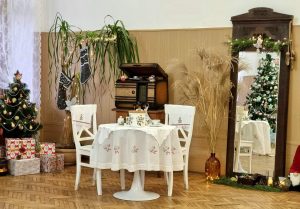 “Зал декорований у вінтажному стилі і чекає на бажаючих зробити новорічну фотосесію в затишній та приємній атмосфері. До Ваших послуг фотозона біля каміна 19-го століття, що збереглася в автентичному вигляді, куточок здійснення мрій, зона чарівних віддзеркалень та чаювання, а також веранда садиби”, – йдеться у повідомленні.