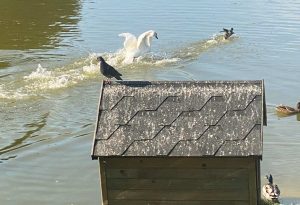 У парку у нас з’явилося поповнення – пара лебедів трьох маленьких висиділа. Спостерігав зараз, як батько лебідь відганяє непроханих гостей – качок від сімейного гніздечка“, – написав Віталій Барвіненко.
